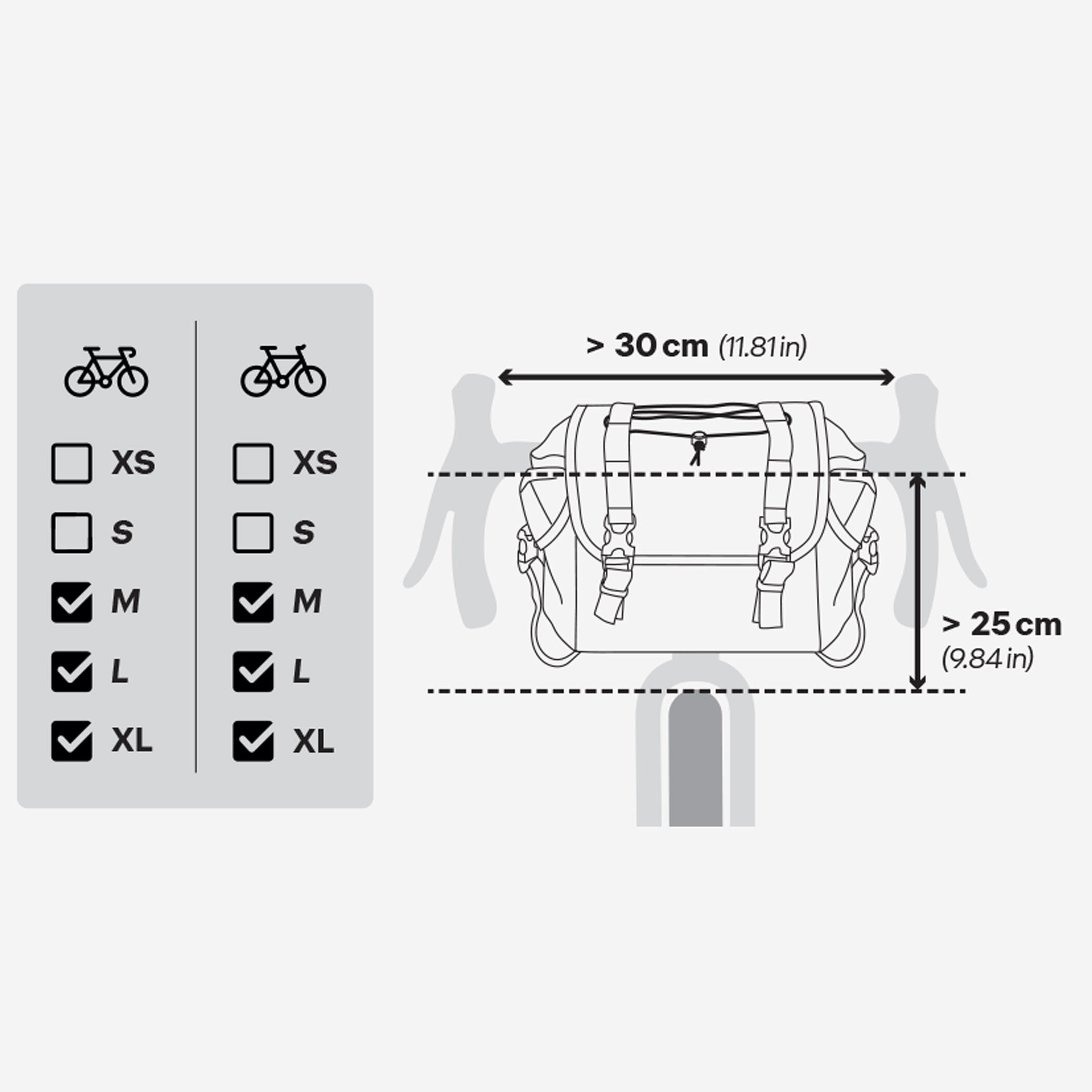 Pomembno: Preverite mere na specifikacijah izdelka, da se prepričate, da je združljiv z vašim kolesom: Najmanjša potrebna razdalja med krmilom in kolesom: 25 cm.