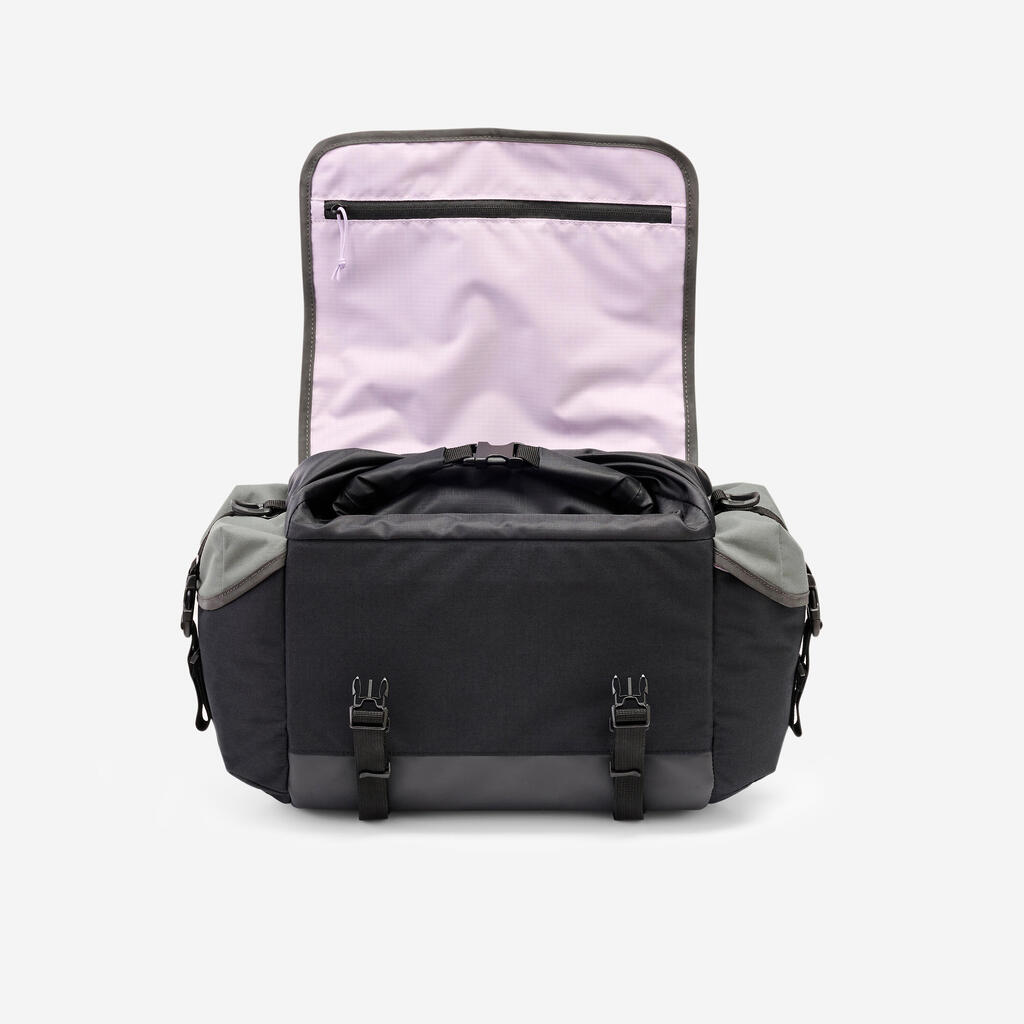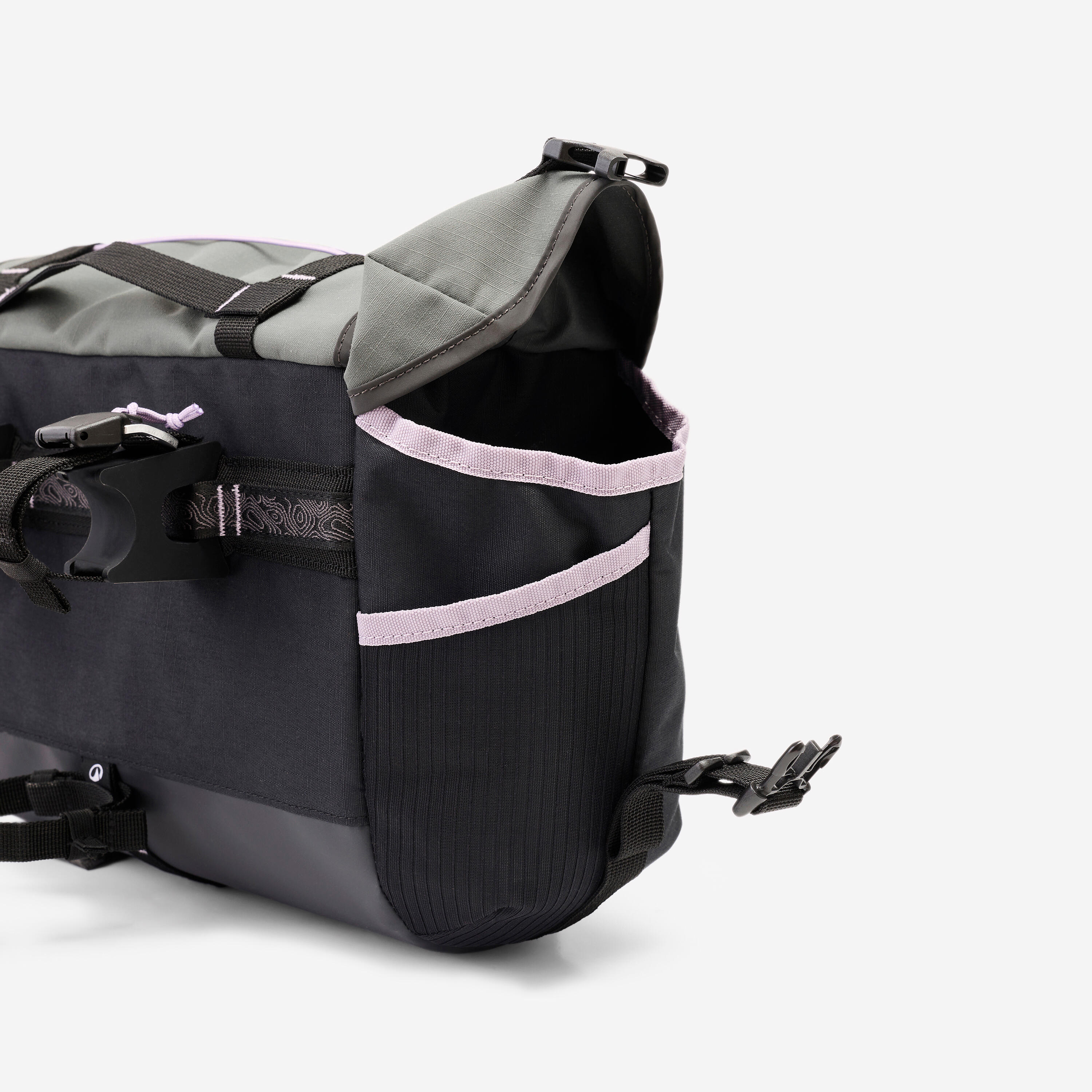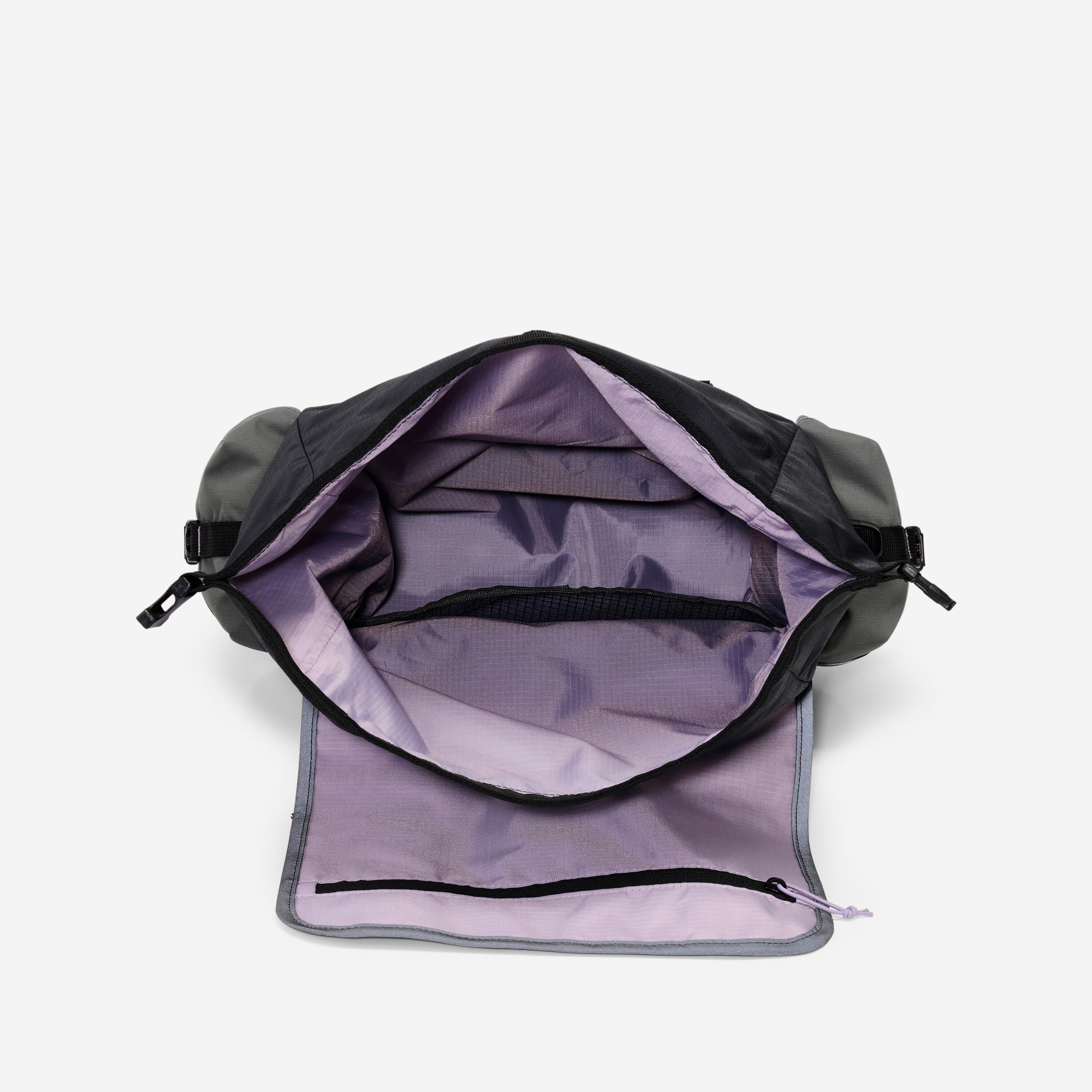 Lahko ga razširite s pomočjo zavihka, ki se razpre in glavnemu predalu doda več prostora ali vam omogoči, da nosite večje breme (npr. zložljivo penasto žimnico).