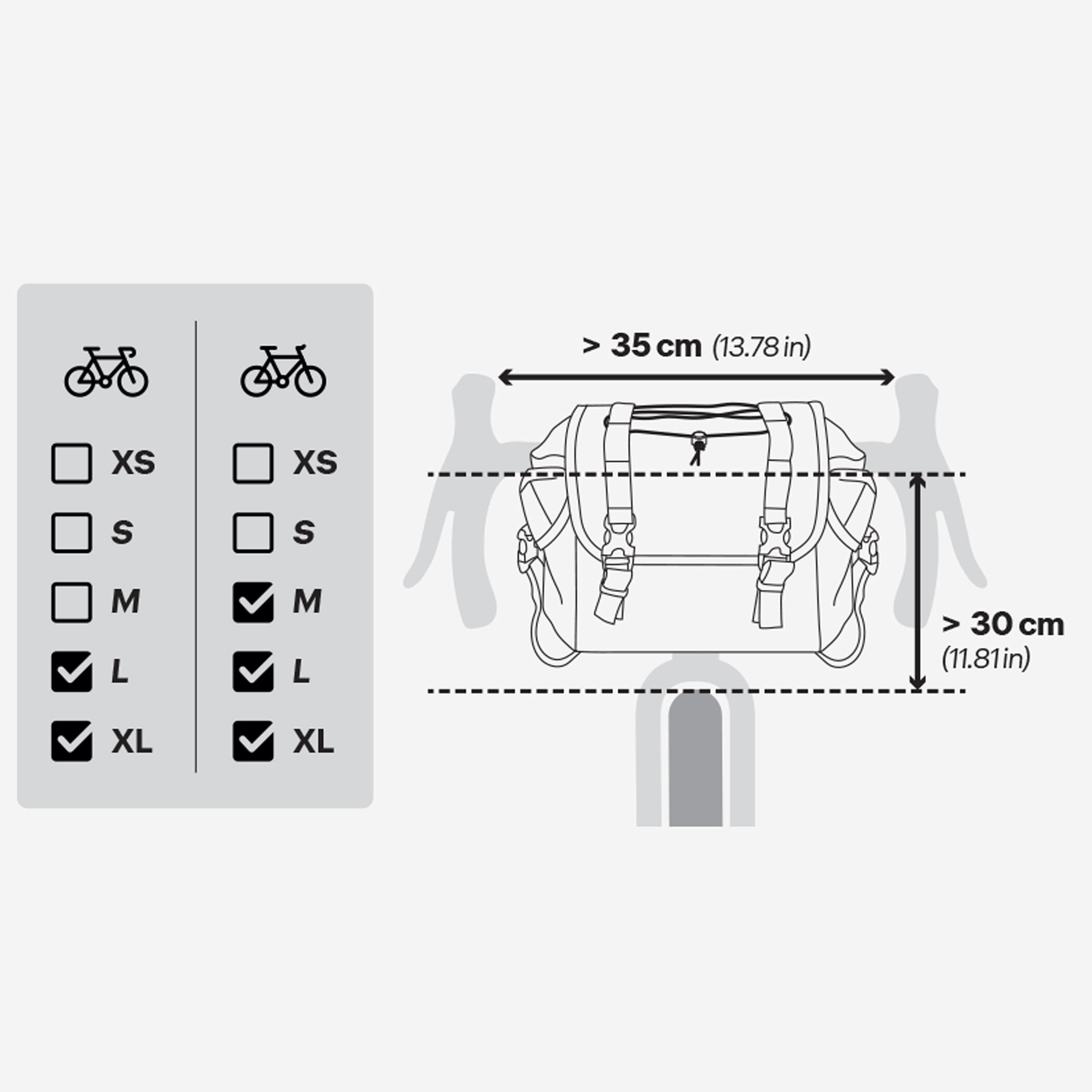 Pomembno: Preverite mere na specifikacijah izdelka, da se prepričate, da je združljiv z vašim kolesom: Najmanjša potrebna razdalja med krmilom in kolesom: 30 cm.