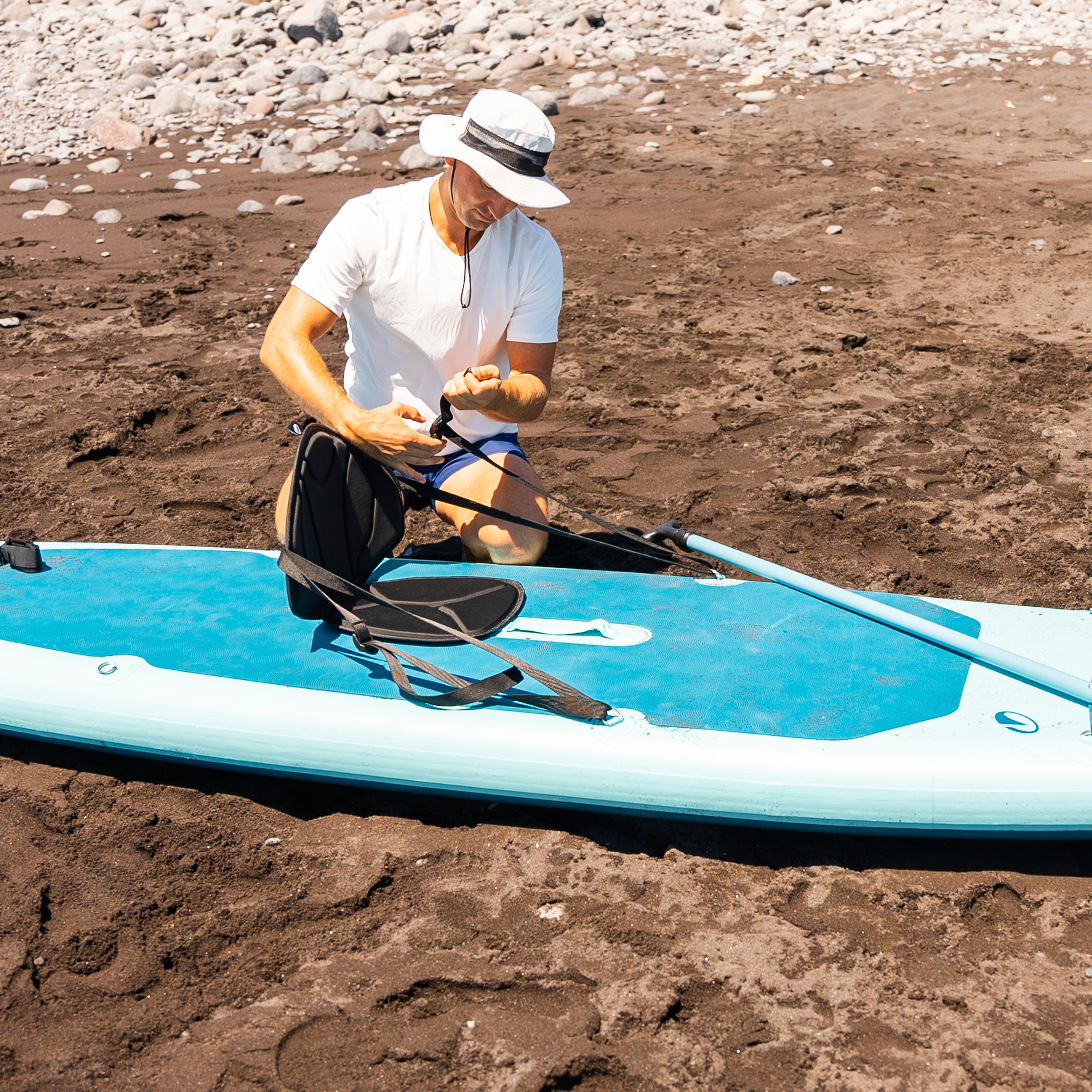 Sedež se lahko uporablja na vseh deskah z vsaj 2 zankama. Na deske s 4 zankami lahko potencialno pritrdite dva sedeža, če teža vašega SUP-a to dopušča.