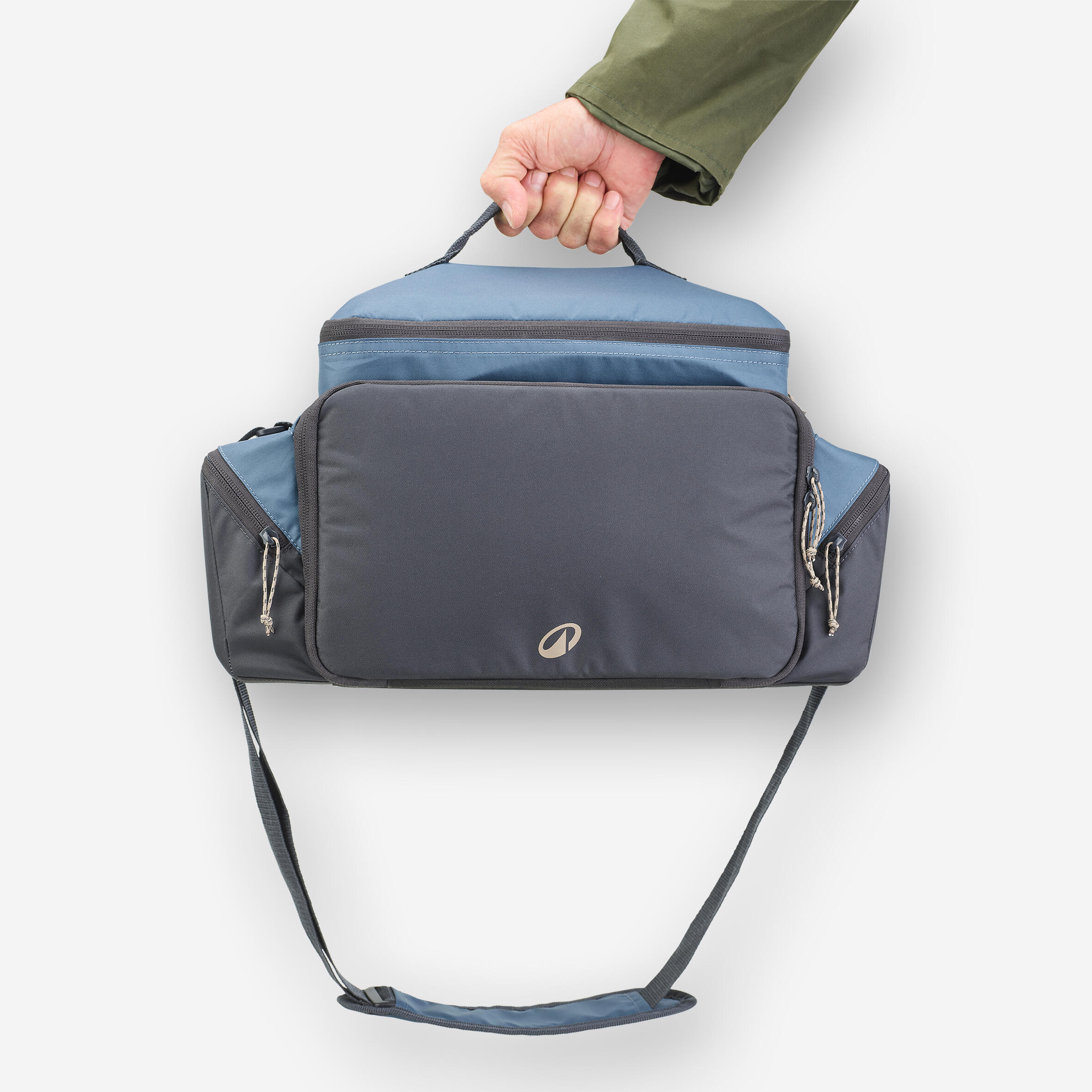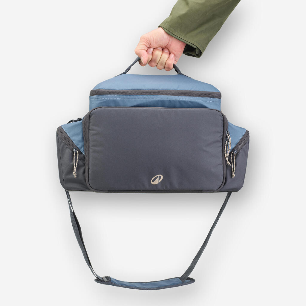 Zunanji material: 300-denski poliester. Trpežen in vodoodbojen. Material na dnu torbe: 600-denski poliester. Trpežen in vodoodbojen. Notranji material: podloga iz EVA. Enostavno jo operete in se ne zatika za trnke.
