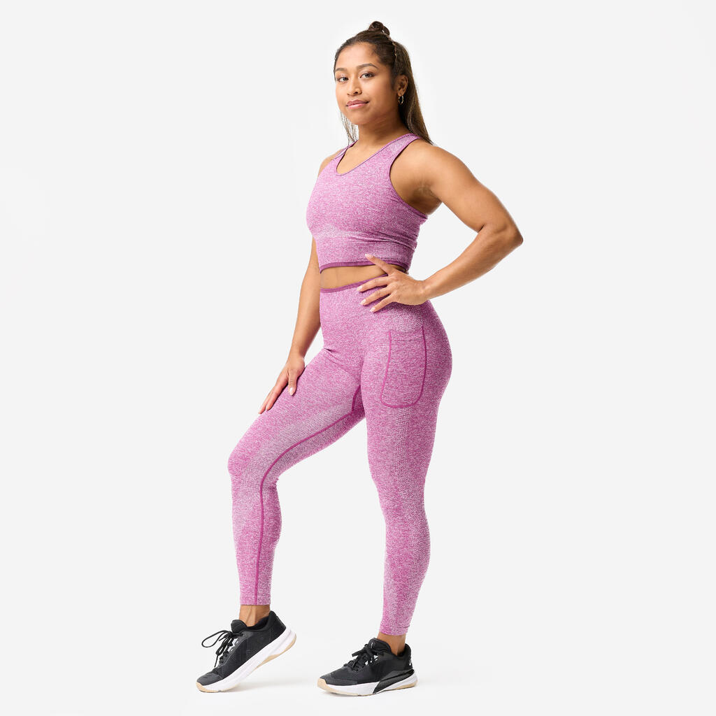 Ta izdelek, zvezda vaših treningov z utežmi, je vrhunska izbira tudi za vaše fitnes treninge. Eleganten nasvet: Za popoln videz kombinirajte te brezšivne legice z našo majico brez rokavov (ref. 361742) ali majico (ref. 359668).