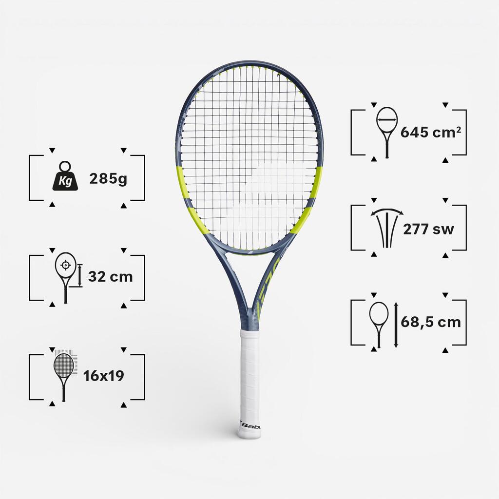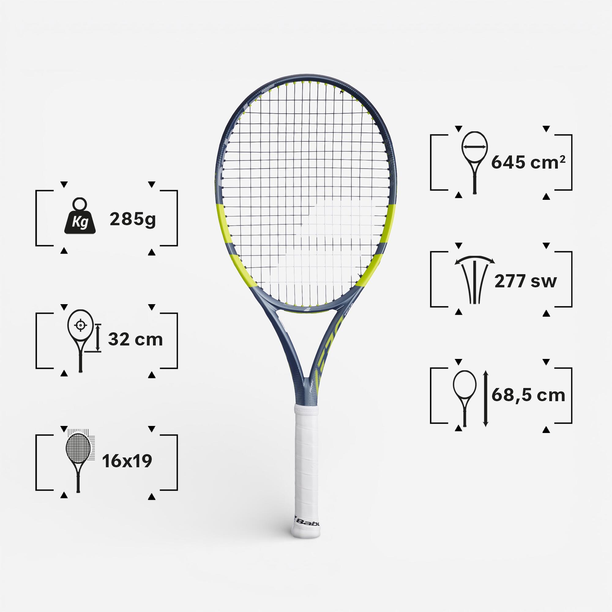 Velikost glave 645 cm². Velikost glave loparja se meri v kvadratnih centimetrih. Velikost glave vpliva na toleranco in moč loparja. Večja kot je glava, močnejši in bolj toleranten je lopar, vendar zagotavlja manjšo kontrolo. Manjša kot je velikost glave, večji je občutek nadzora, vendar žrtvujete nekaj moči in tolerance.