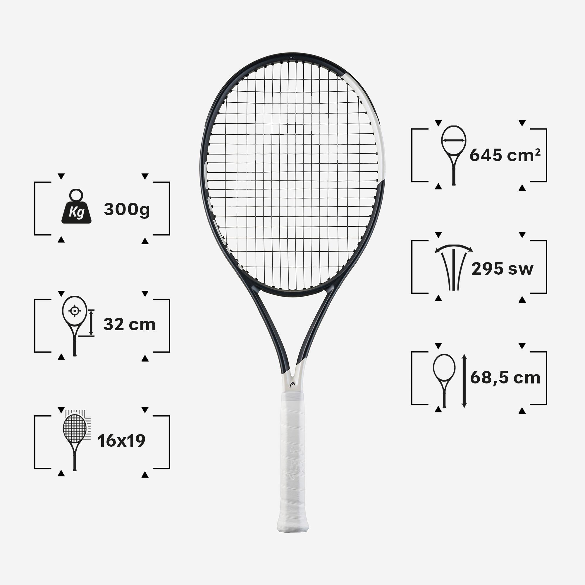 Velikost glave 645 cm². Velikost glave loparja se meri v kvadratnih centimetrih. Velikost glave vpliva na toleranco in moč loparja. Večja kot je glava, močnejši in bolj toleranten je lopar, vendar zagotavlja manjšo kontrolo. Manjša kot je velikost glave, večji je občutek nadzora, vendar žrtvujete nekaj moči in tolerance.