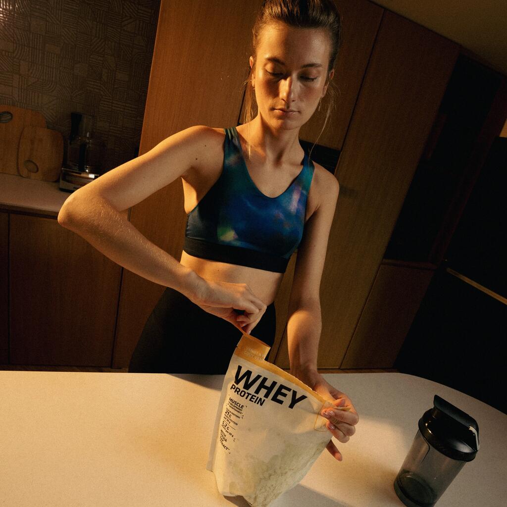 - V posode dodajte tekočino, nato pa še beljakovinski napitek.