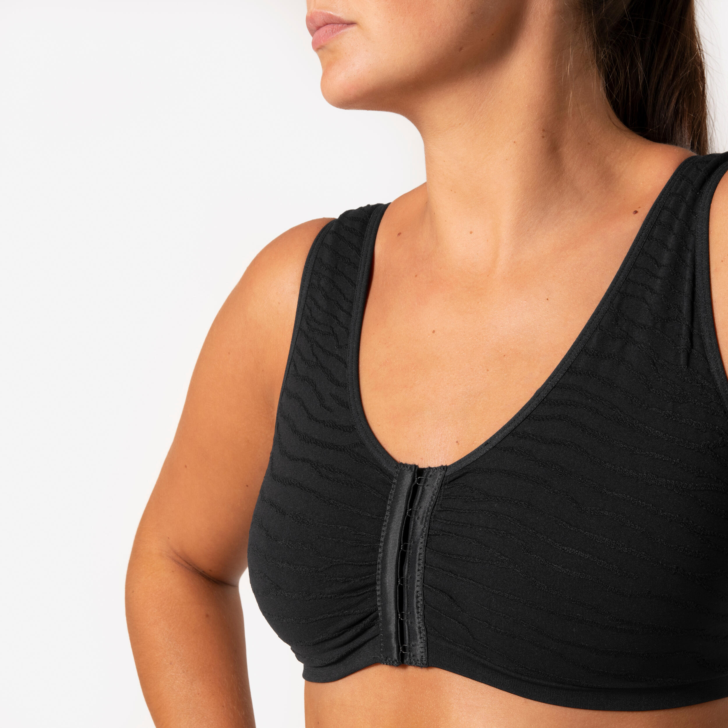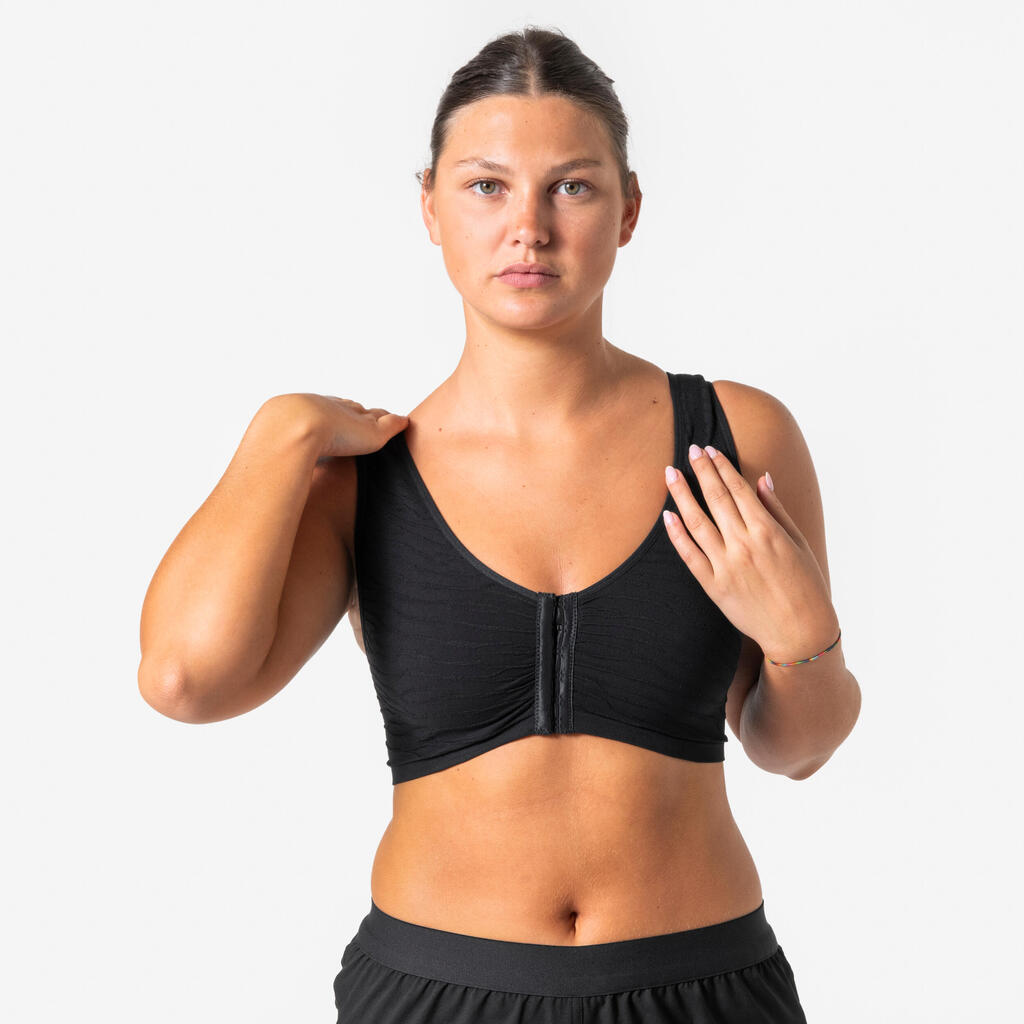 Športni nedrček s prednjim zapenjanjem (kaveljček in zanka), tako da ga lahko zlahka oblečete in slečete.