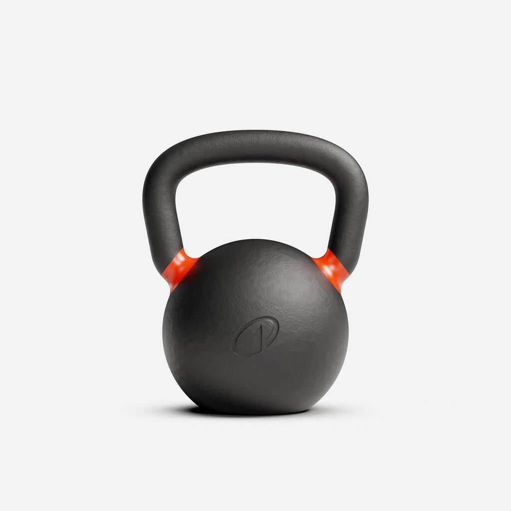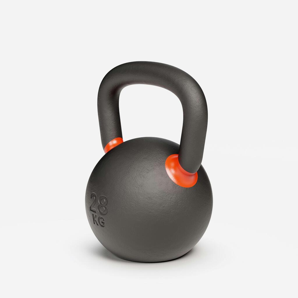Za nadzorovane padce združite svoj 28-kilogramski kettlebell z našo gumijasto podlogo za tla (ref. 8651539). Absorbira udarce, hkrati pa ščiti vaš prostor in ohranja tišino.