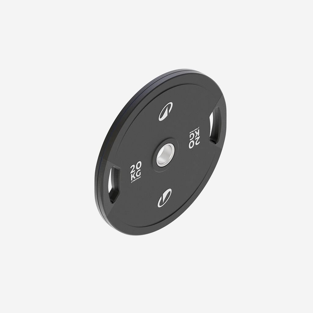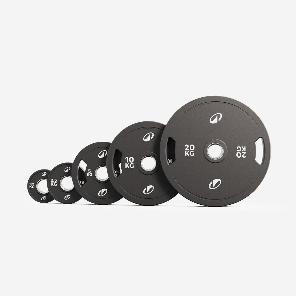Ti diski za vadbo z utežmi, ki so na voljo v različnih težah od 0,5 kg do 20 kg, so idealni za uporabo s standardnimi olimpijskimi palicami, kot je naša palica za dvigovanje uteži (ref. 8491834) in 50 mm objemkami za diske (ref. 8485052), odvisno od vaših specifičnih potreb po vadbi.