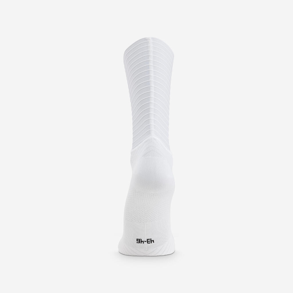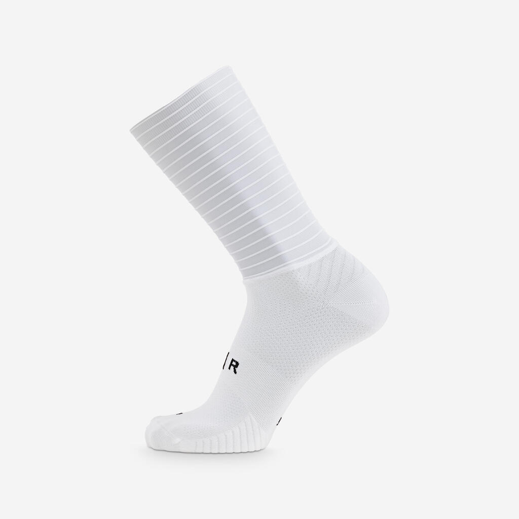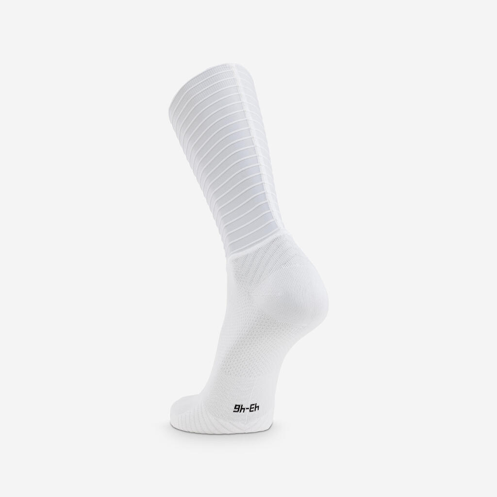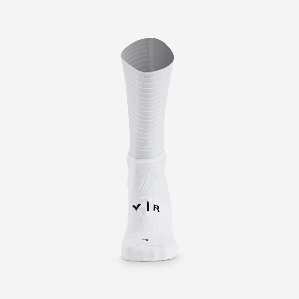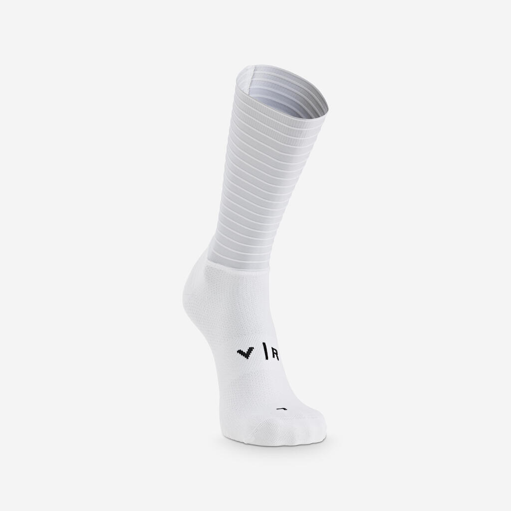 Nogavice RCR-F so rezultat natančnih aerodinamičnih raziskav, ki smo jih izvedli skupaj z našimi partnerji na področju aerodinamike.Dopolnjujejo tekstilno ponudbo RCR-F, ki je zasnovana na hitrosti z enim samim ciljem: da bi oblikovali najhitrejšo opremo v pelotonu. Nogavice AERO PRO nimajo nobenih potiskov, da bi zagotovile optimalno aerodinamično zmogljivost. Višina nogavic ustreza predpisom UCI.