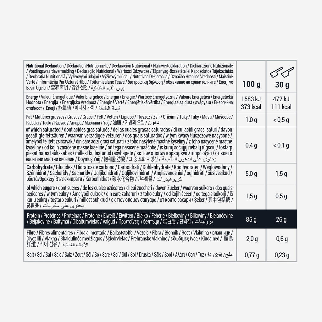 100 % izolat sirotkinih beljakovin. 26 g beljakovin, 6,7 g BCAA in samo 0,5 g sladkorja na šejker. Nearomatizirano. Pakiranje zadostuje za pripravo 30 napitkov.