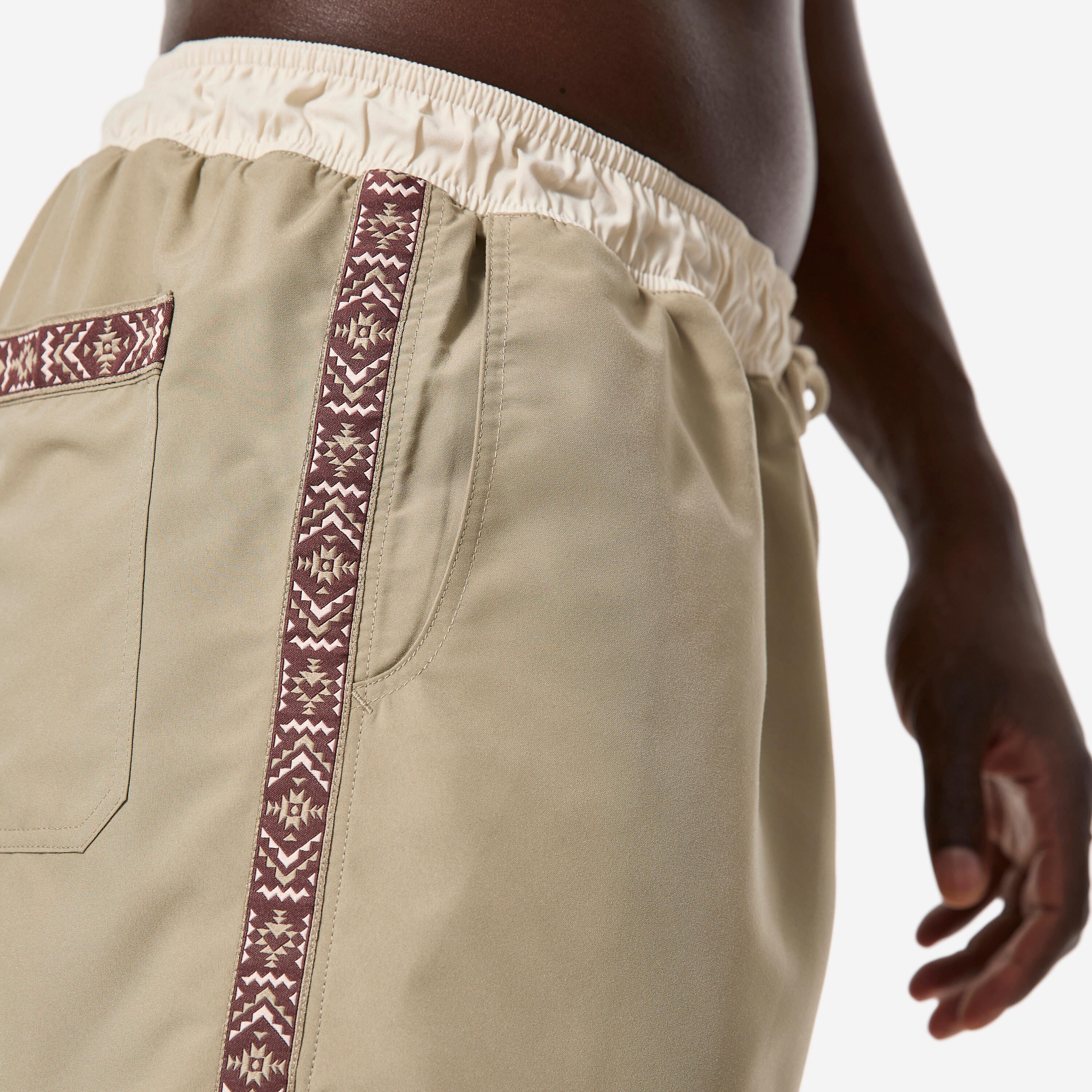 Delno elastični pas in vrvica poskrbita za odlično prileganje. Ploski pas zagotavlja, da bodo kratke hlače med deskanjem ostale na svojem mestu. Anatomska zasnova pasu združuje prednosti elastičnega pasu (se prilagaja različnim postavam) in ploskega pasu (stabilnost v vodi).