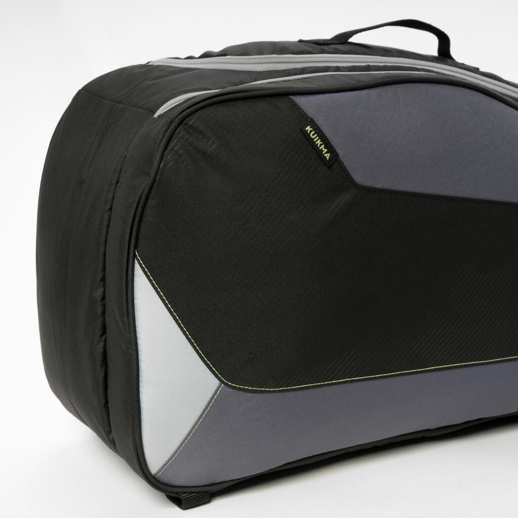 Dobra torba za padel tenis mora imeti prostor za vso vašo opremo, da vam prihrani čas, ko se odpravite na igrišče in pri pakiranju. V ta namen Kuikma ponuja torbo PL Team z dvema velikima predelkoma, od katerih je eden ločen, tako da lahko udobno in varno prenašate svoje loparje. Ima tudi manjše dodatne žepe za dodatke.