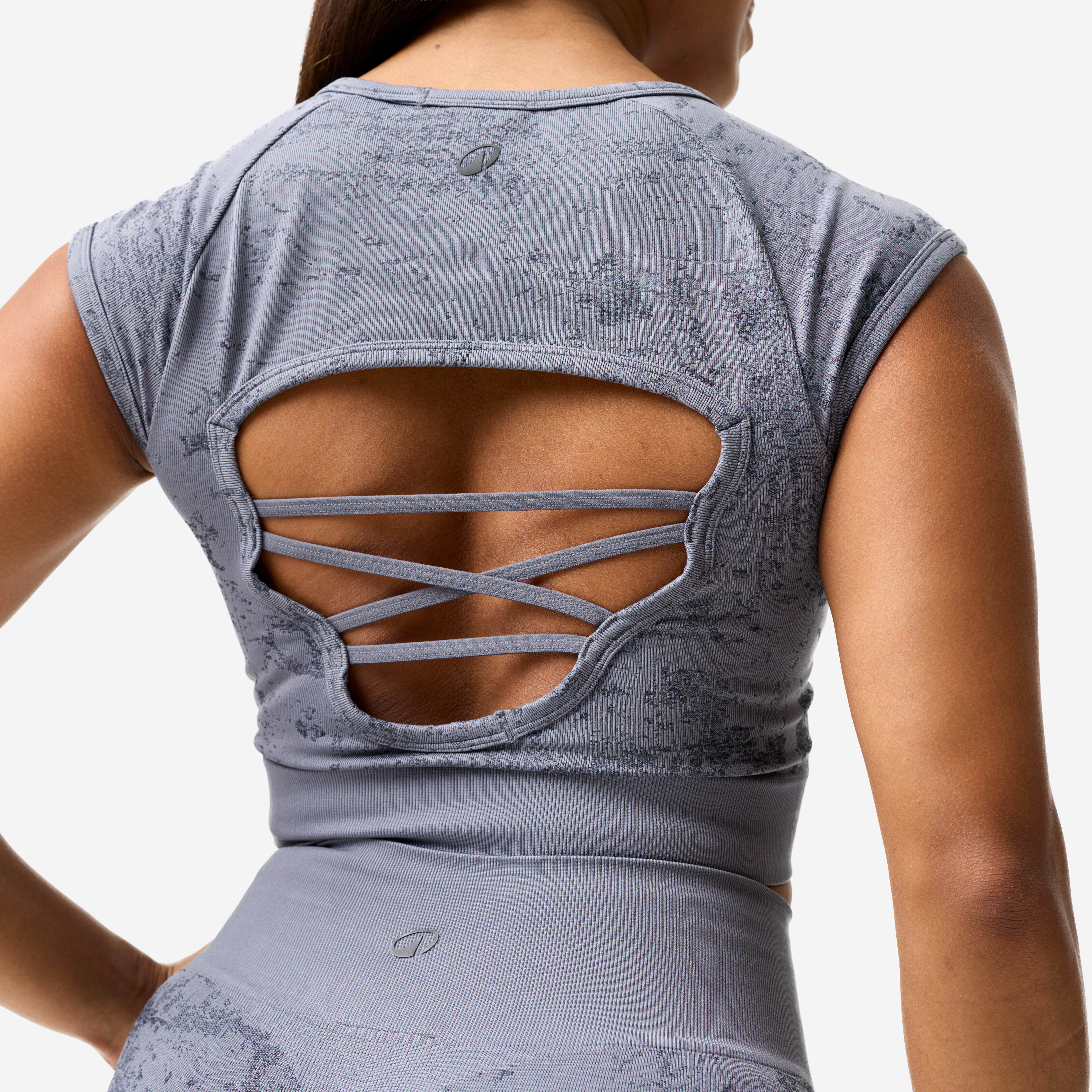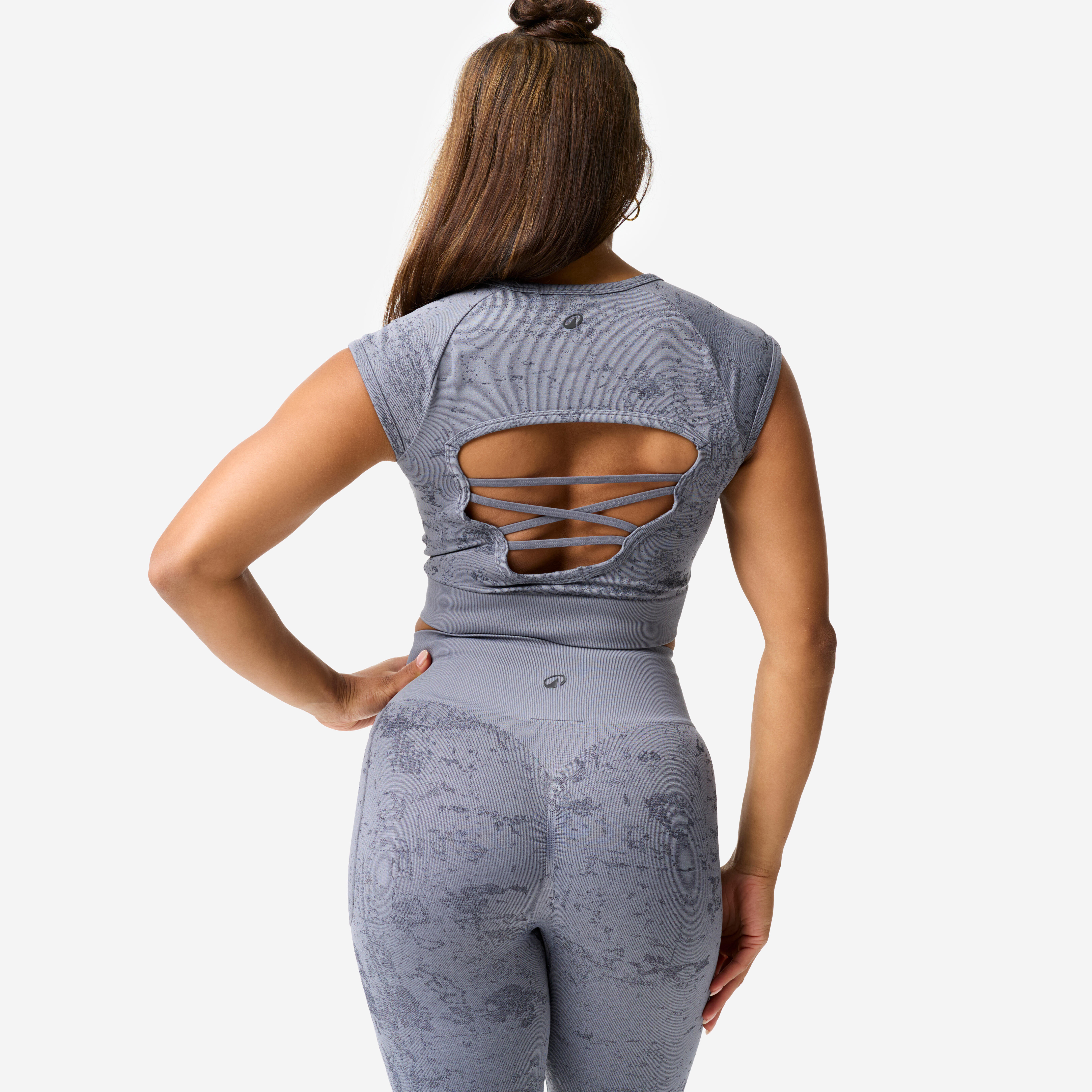 Nagubanje na sredini prsi ustvarja nabran učinek, ki laska in dodaja volumen. Ta tehnični detajl je tudi estetski:skrajšani majici doda vizualno strukturo. Nagubanje dodaja majici za vadbo z utežmi žensko dimenzijo, tako da se lahko počutite močne in ženstvene.