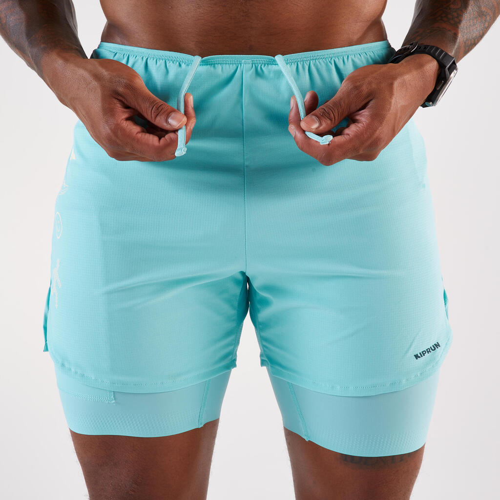 Moške tekaške hlače 2 v 1, Kiprun Run 500 Comfort
