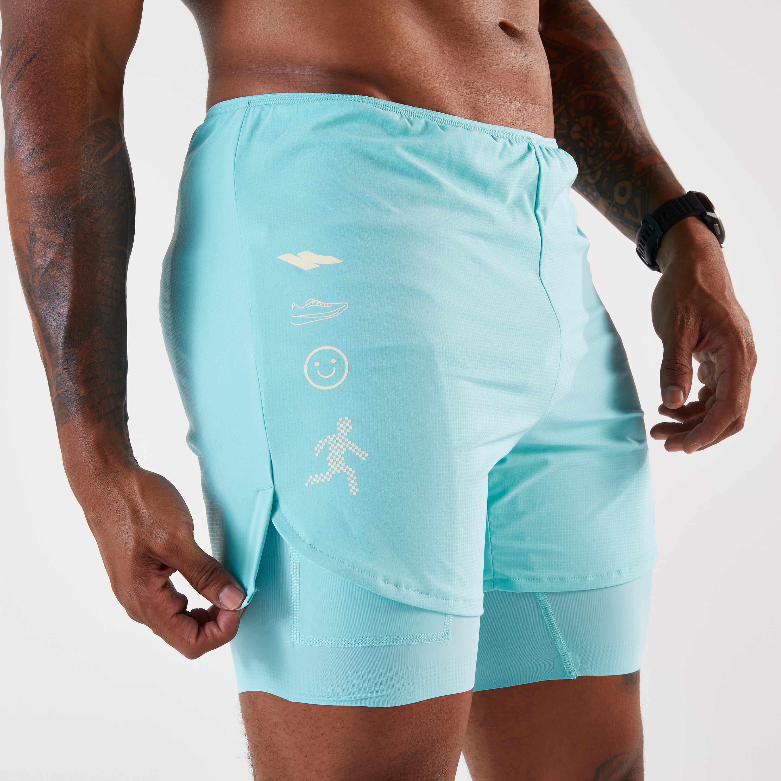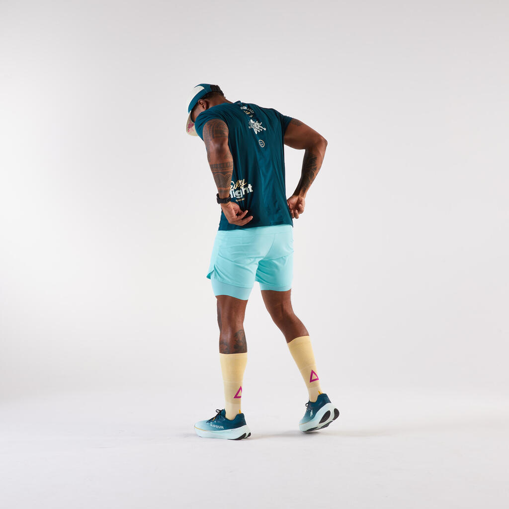 Te kratke hlače 2 v 1, zasnovane za tekače, ki zahtevajo udobje in tehnično dovršenost, ponujajo optimalno oporo in udobje za vse vaše teke.