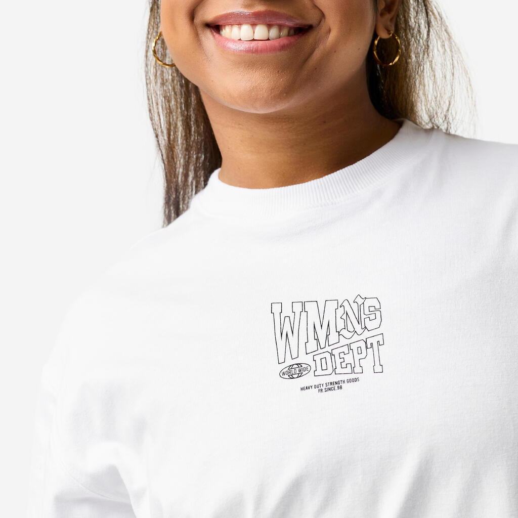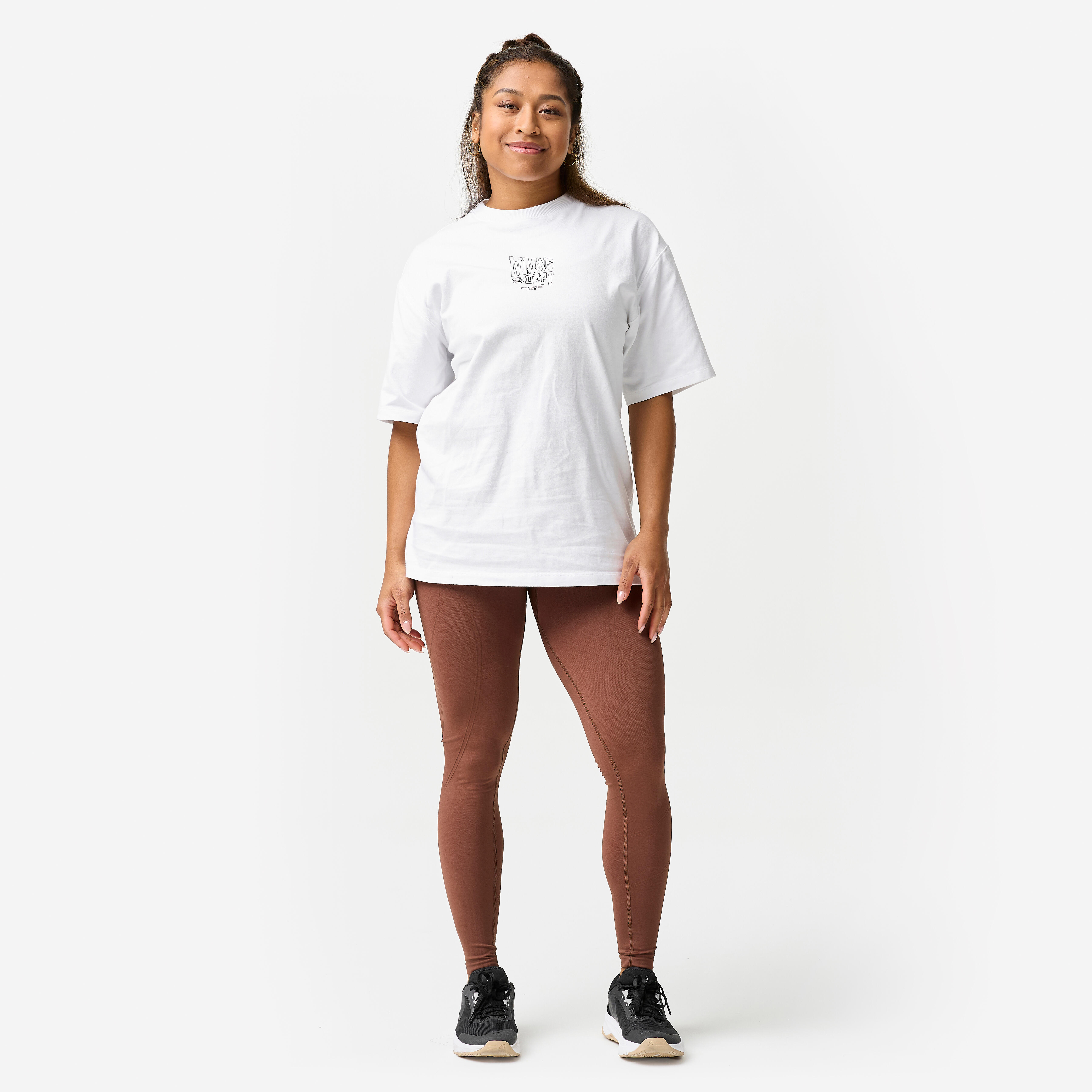 Kombinirajte jo s pajkicami s skritimi šivi (ref. 8985797) in s tem ustvarite kontrasten volumen. XXL dolžina majica je v kontrastu z oprijetimi pajkicami. Ko ste se ogreli in ste slekli svojo majico, potem nadaljujte z bolj intenzivnimi ponovitvami v športnem nedrčku.