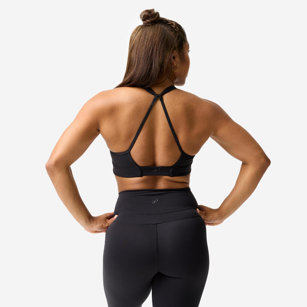 Trakovi se pritrdijo za zadnji del vratu in se prilagodijo vašim potrebam. Želite več pokritosti? Zategnite jih. Želite sprostiti več prostora na hrbtu za zračenje in pokazati deltoidne mišice? Zrahljajte jih. Ta prilagodljivost vam daje popoln nadzor nad vašim videzom in udobjem. Športni nedrček prilagodite svojemu razpoloženju brez kompromisov.
