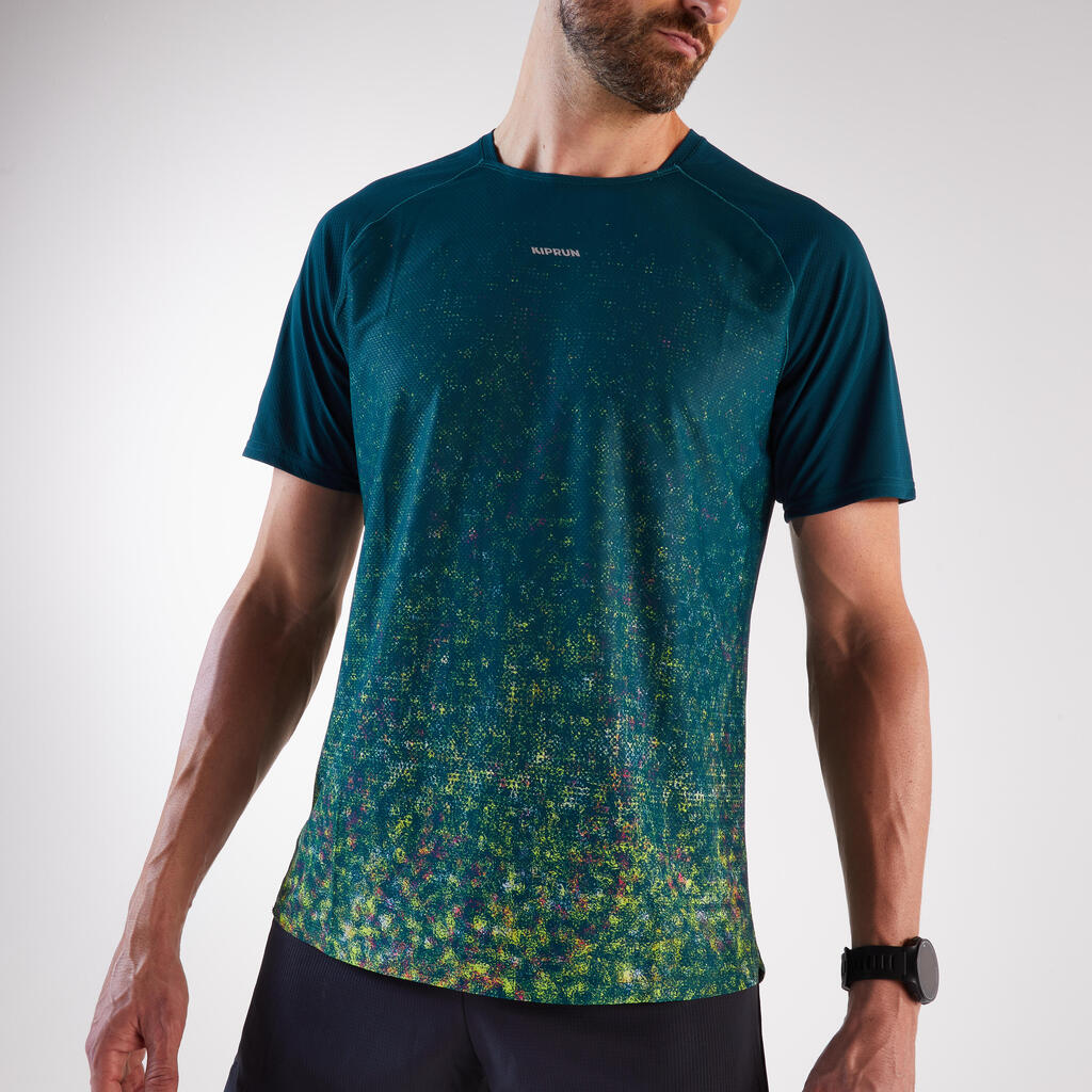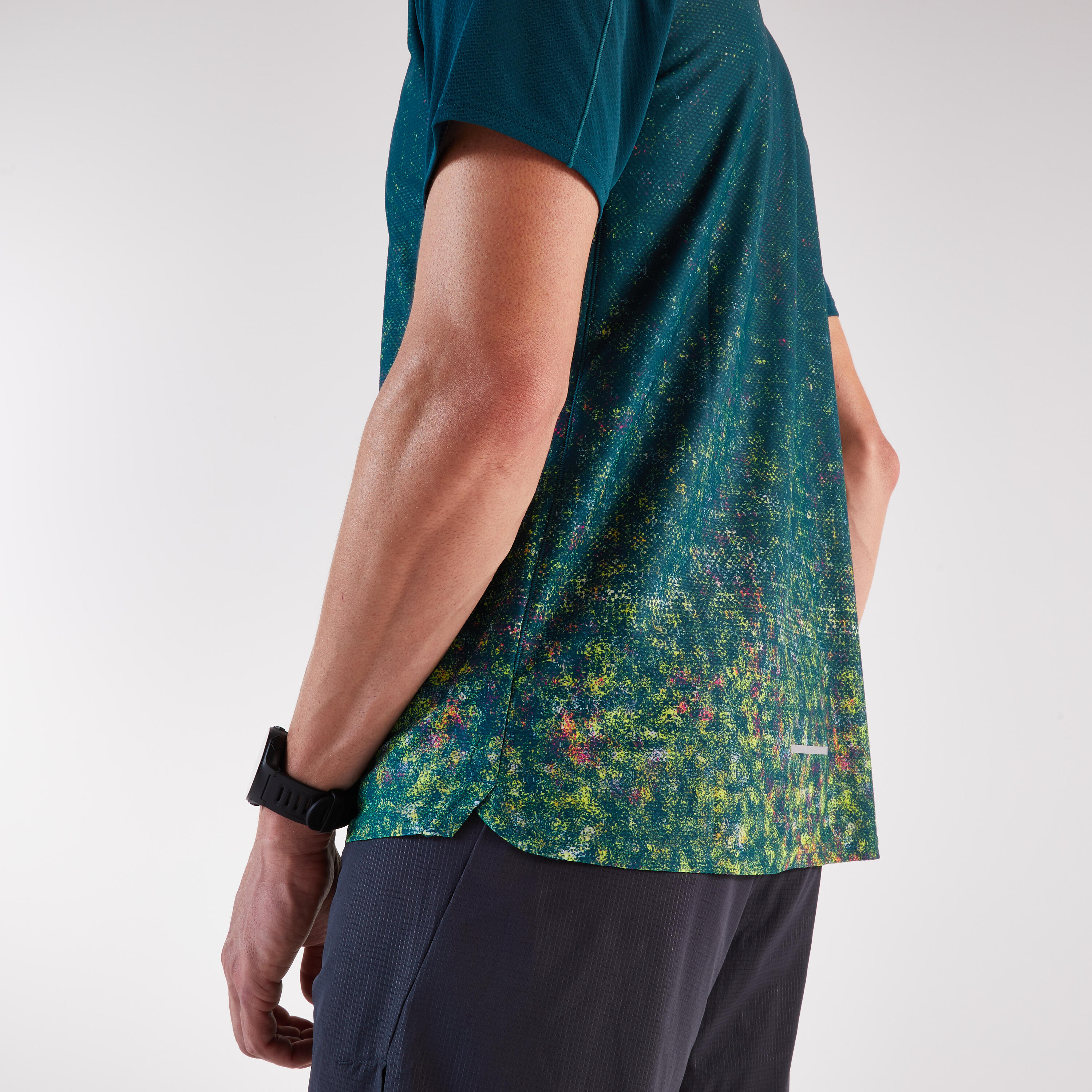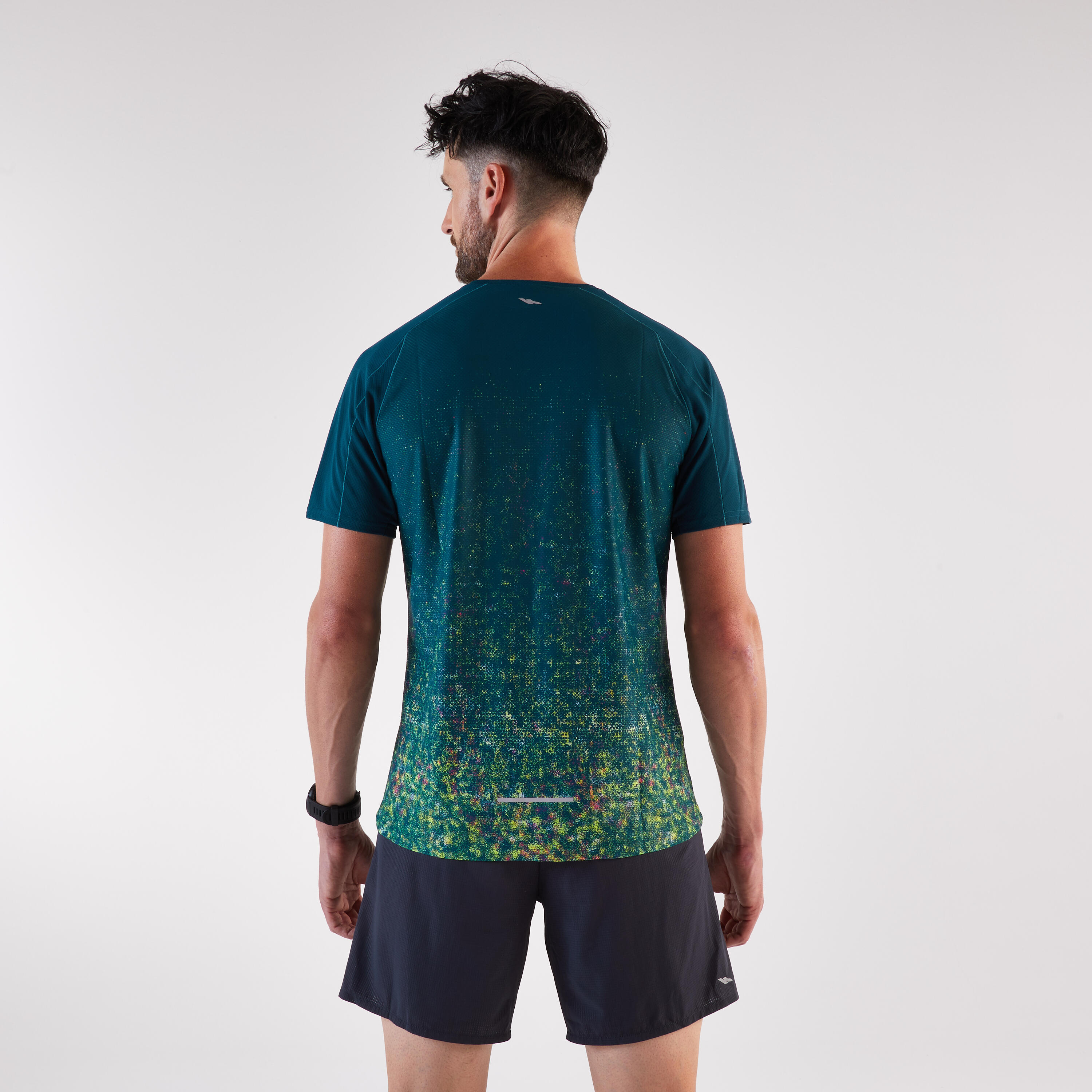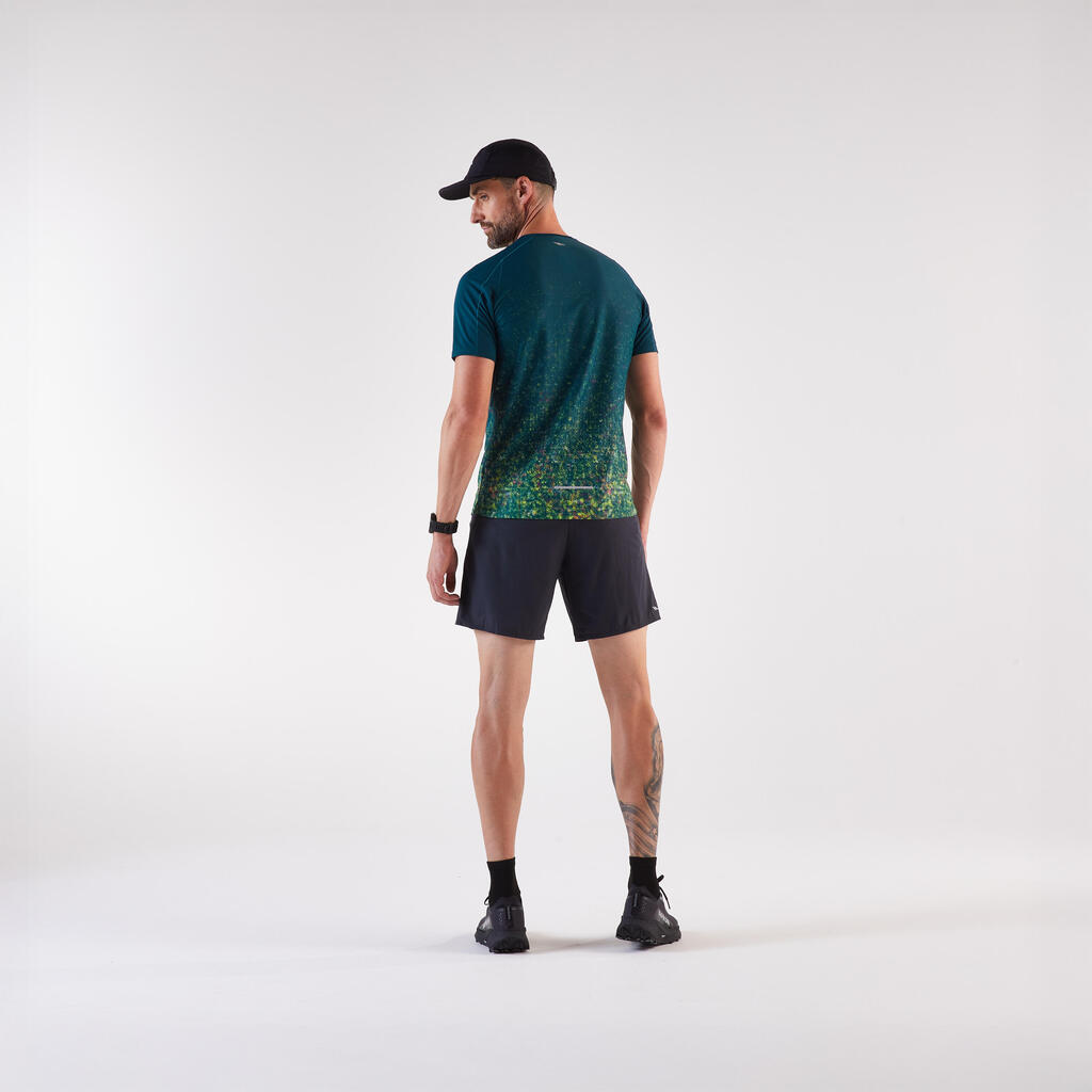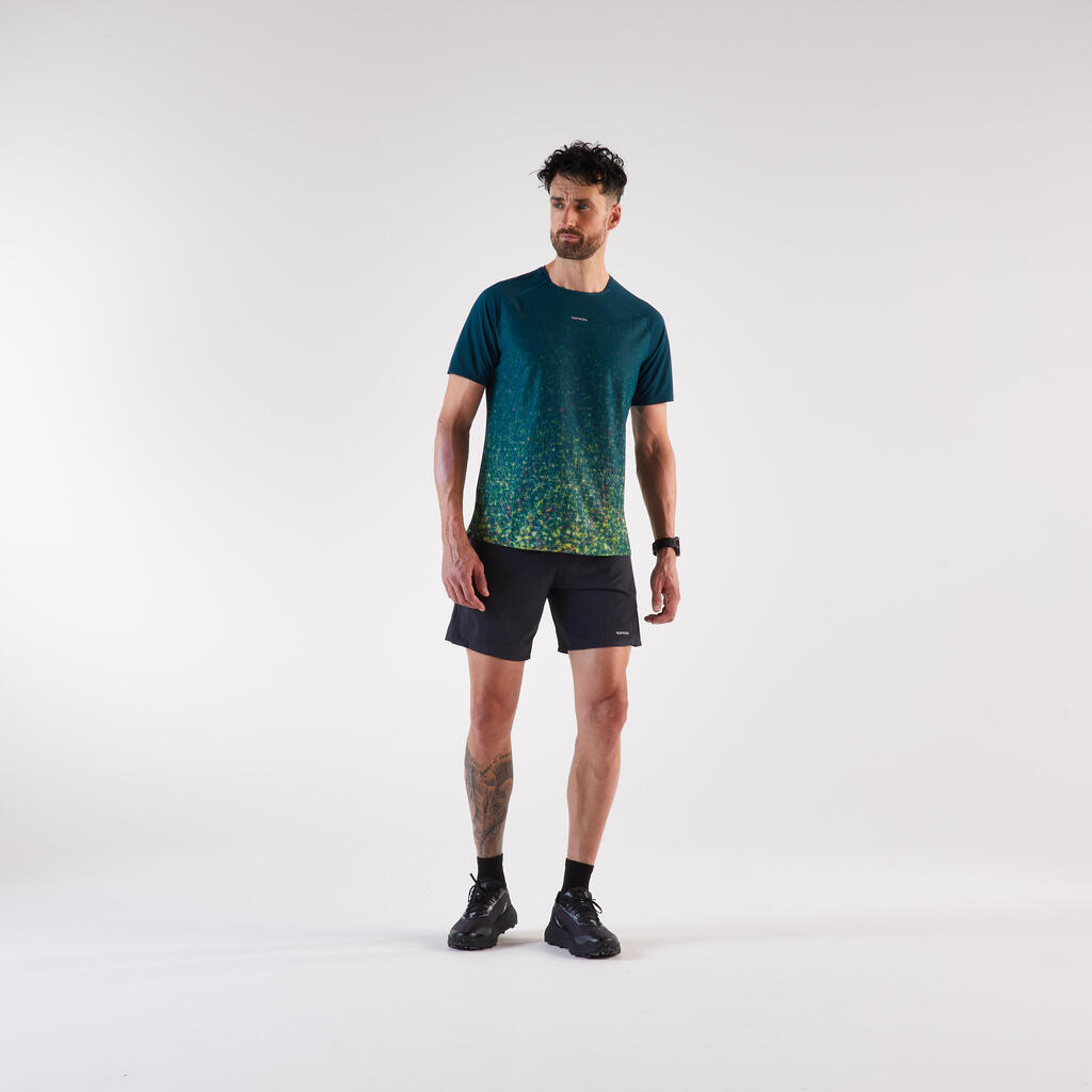Ta lahka tekaška majica, zasnovana za tekače, ki se podajajo na pohodniške poti, je odporna na trenje nahrbtnika in vas ohranja suhe.