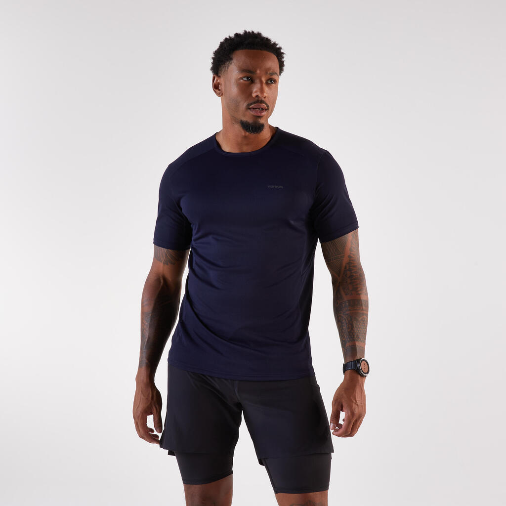 Ta lahka tekaška majica, zasnovana za tekače, ki se podajajo na pohodniške poti, je odporna na trenje nahrbtnika in vas ohranja suhe.