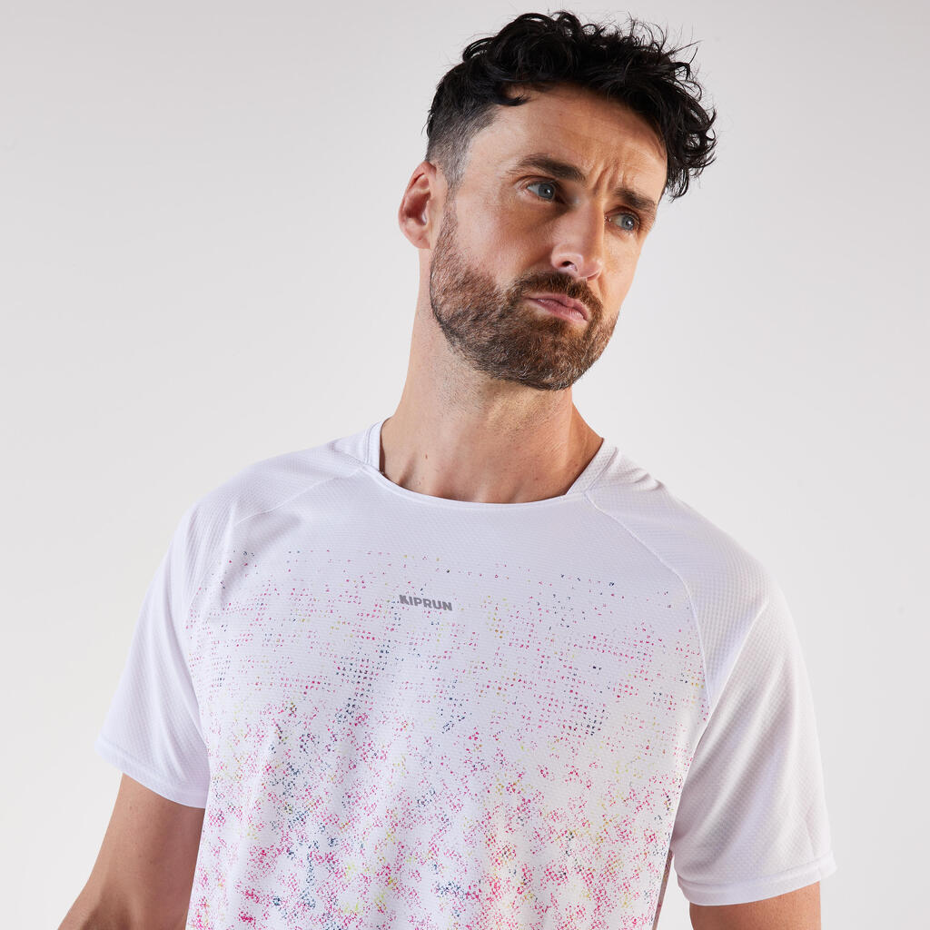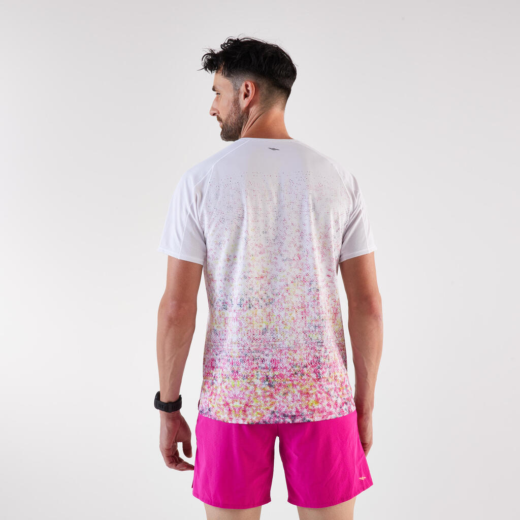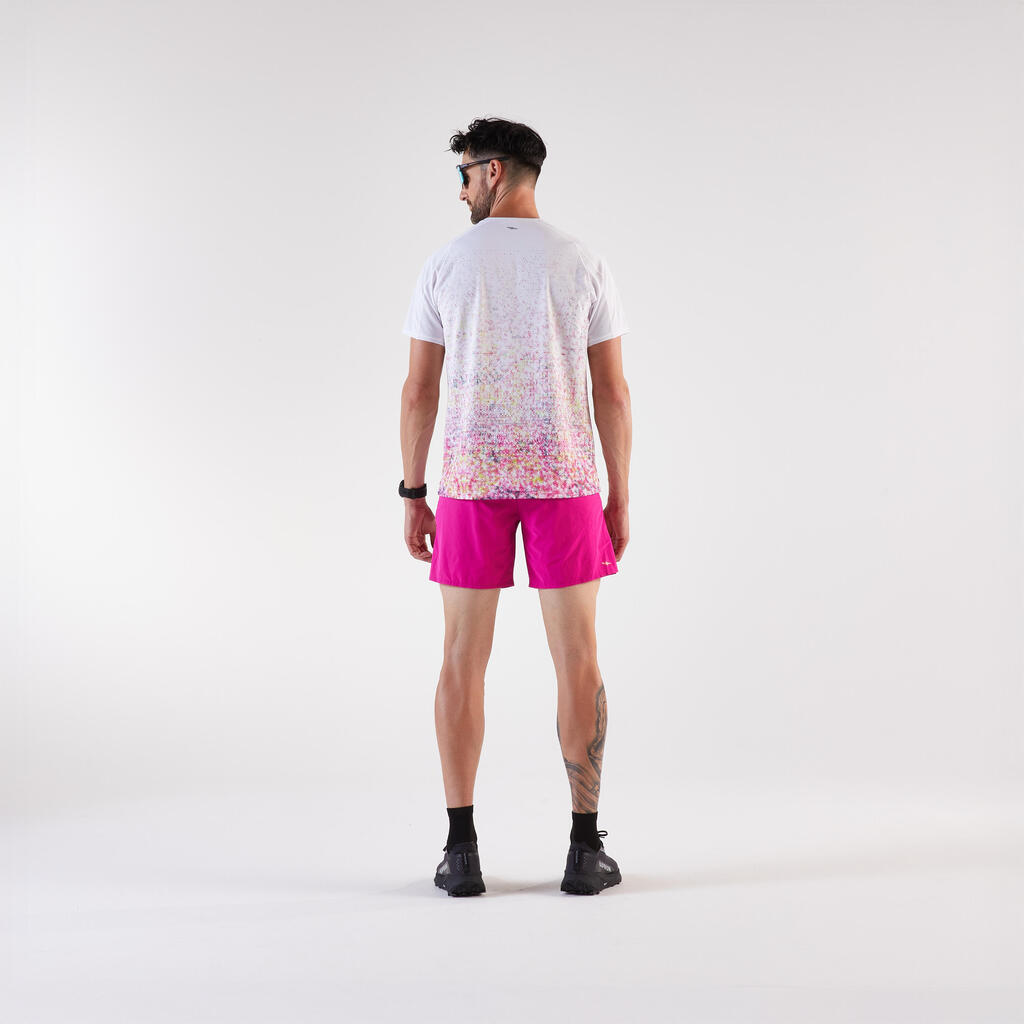 Ta lahka tekaška majica, zasnovana za tekače, ki se podajajo na pohodniške poti, je odporna na trenje nahrbtnika in vas ohranja suhe.