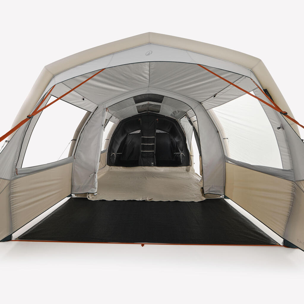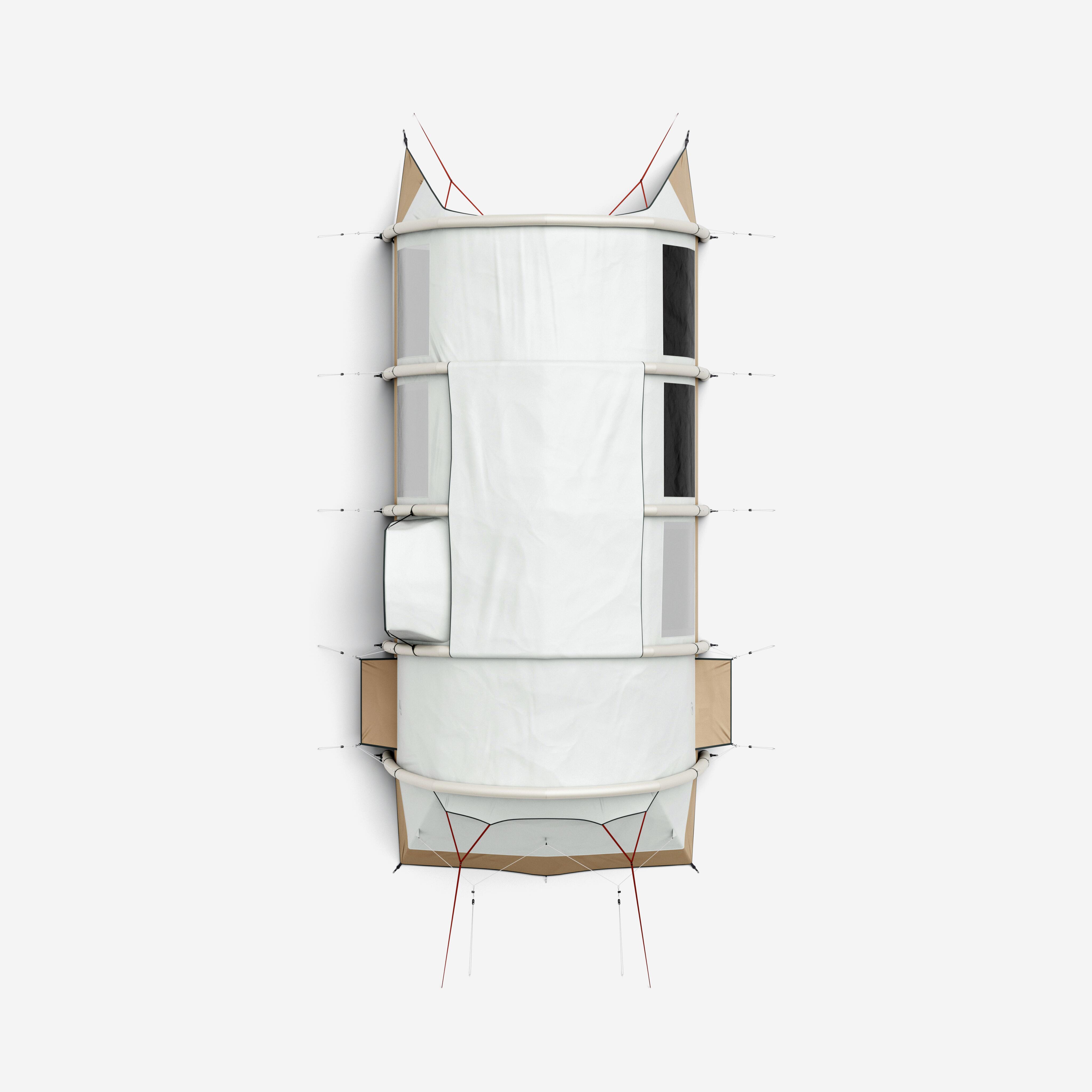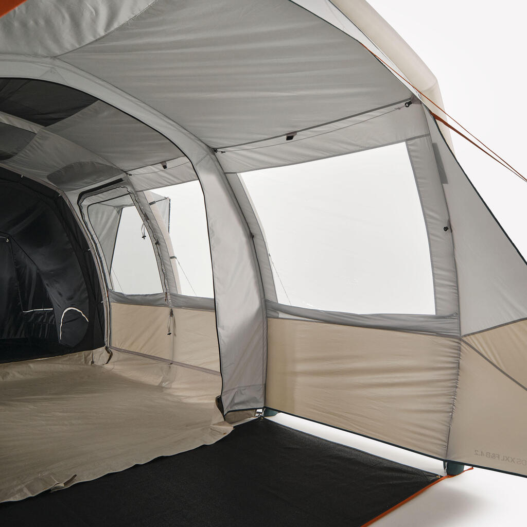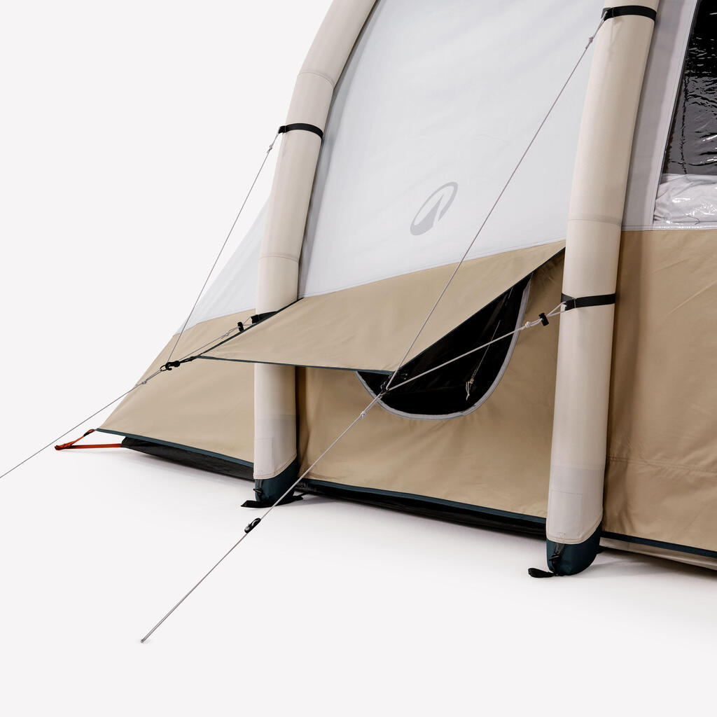 Zračna ponjava na bivalnem prostoru zagotavlja zračenje in prepreči nabiranje kondenzacije v šotoru. V vsaki sobi: visoka prezračevalna loputa na zunanji strani in velika nizka prezračevalna loputa na notranji strani. Dnevni in spalni prostor sta opremljena z mrežo za komarje.