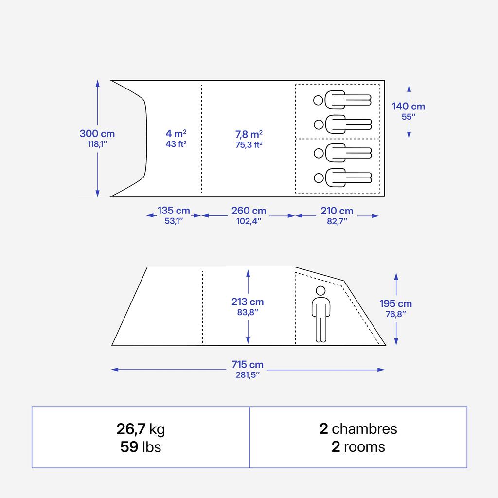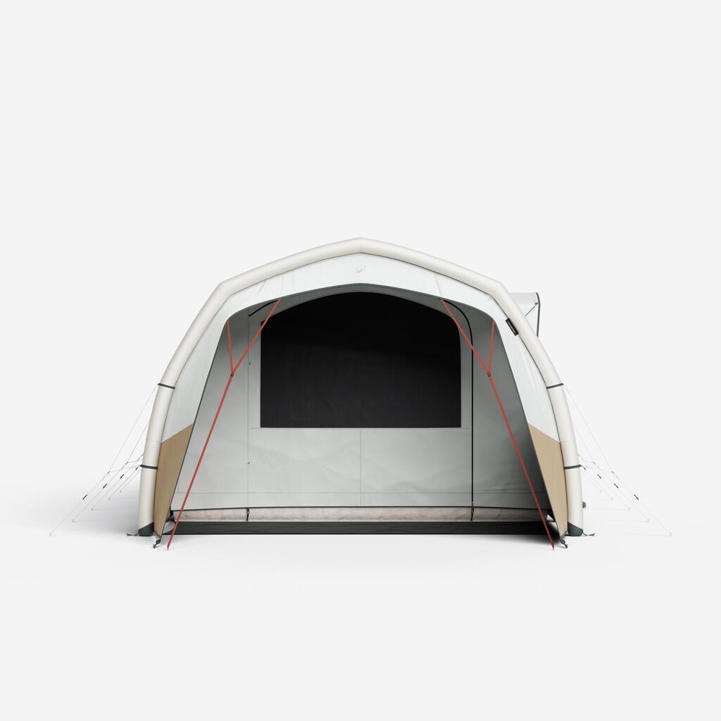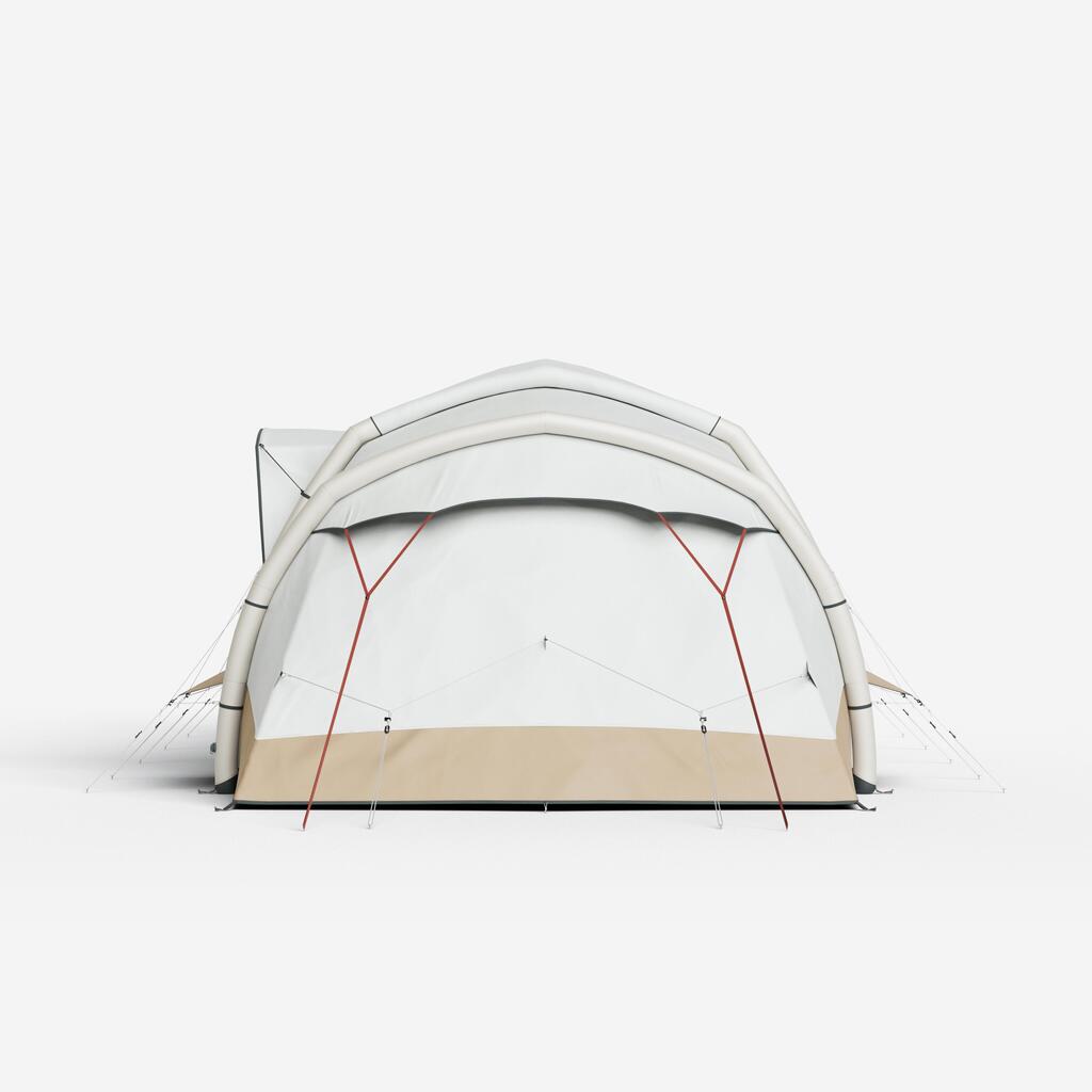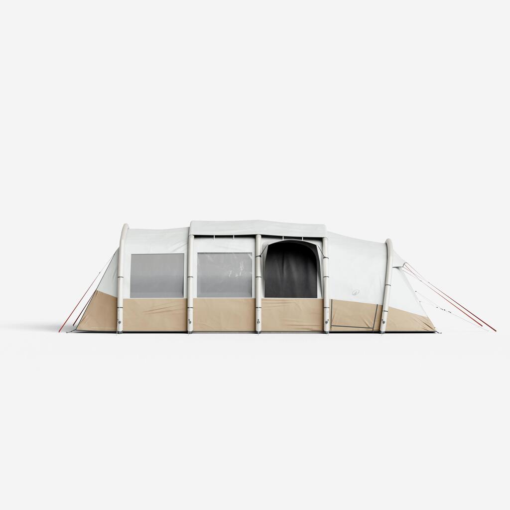 Zračna ponjava na bivalnem prostoru zagotavlja zračenje in prepreči nabiranje kondenzacije v šotoru. V vsaki sobi: visoka prezračevalna loputa na zunanji strani in velika nizka prezračevalna loputa na notranji strani. Dnevni in spalni prostor sta opremljena z mrežo za komarje.