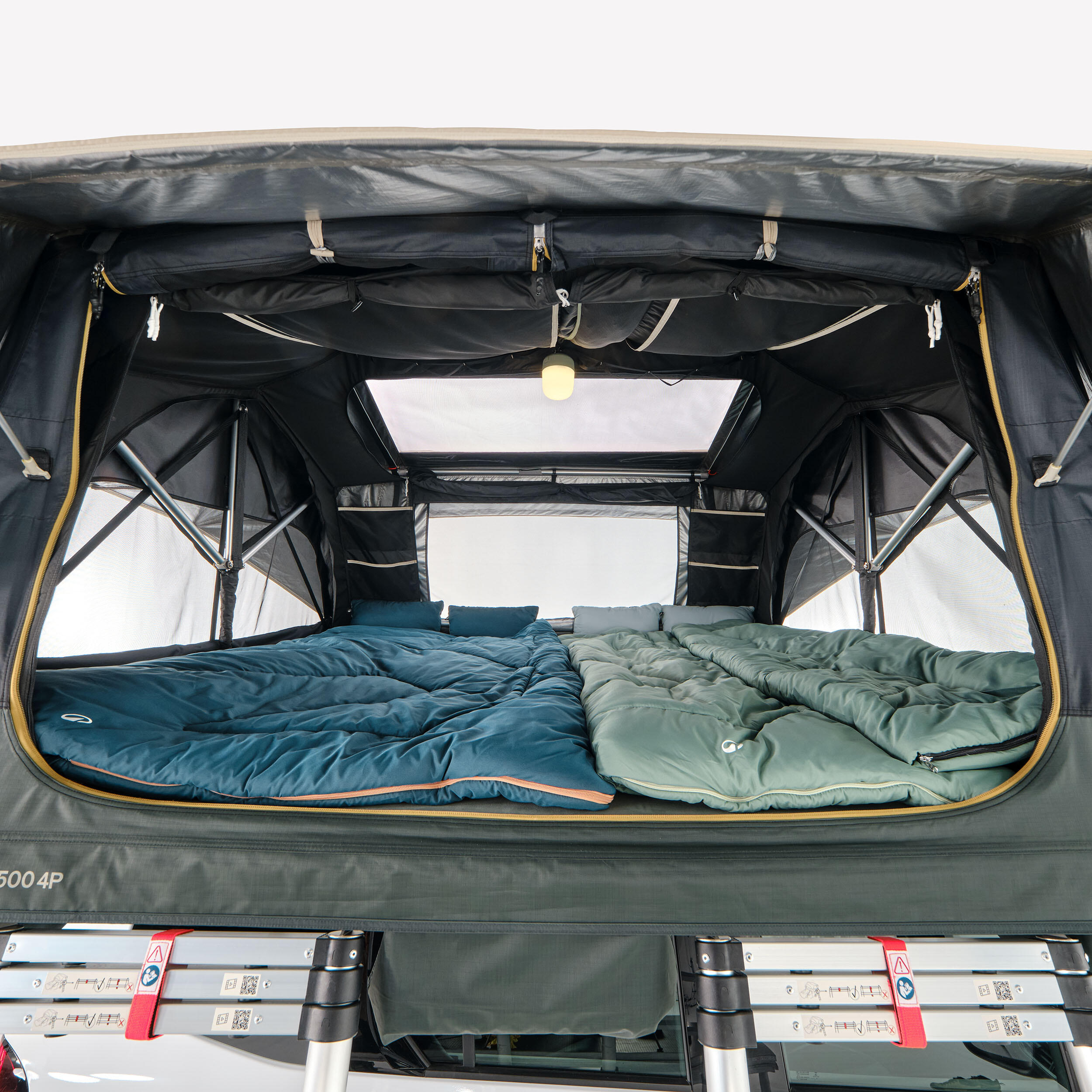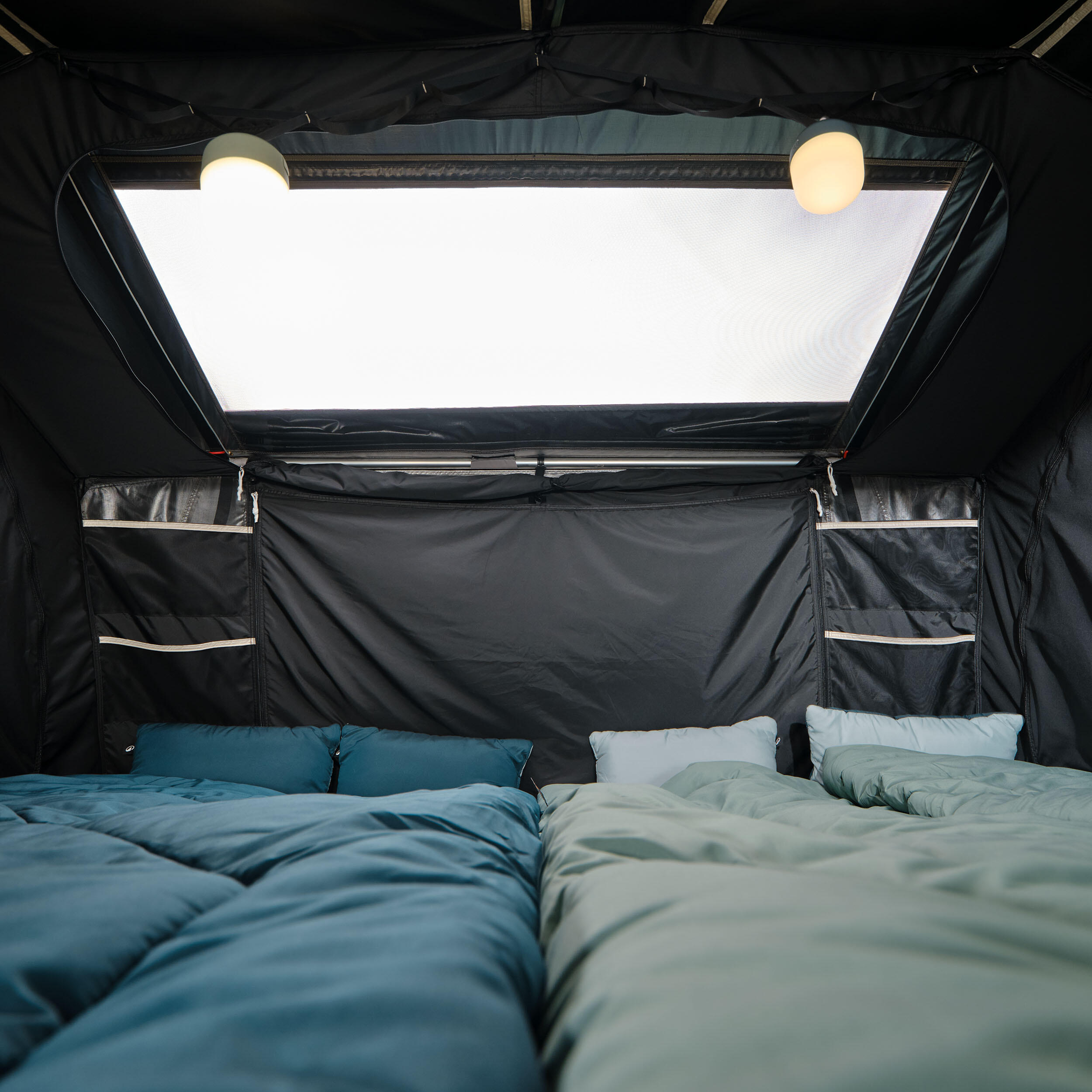 - stransko prezračevanje spalnice, ki se odpre z eno samo roko, - strešni zračnik, da lahko občudujete zvezde, - material Fresh & Black za hladne razmere in temne noči.