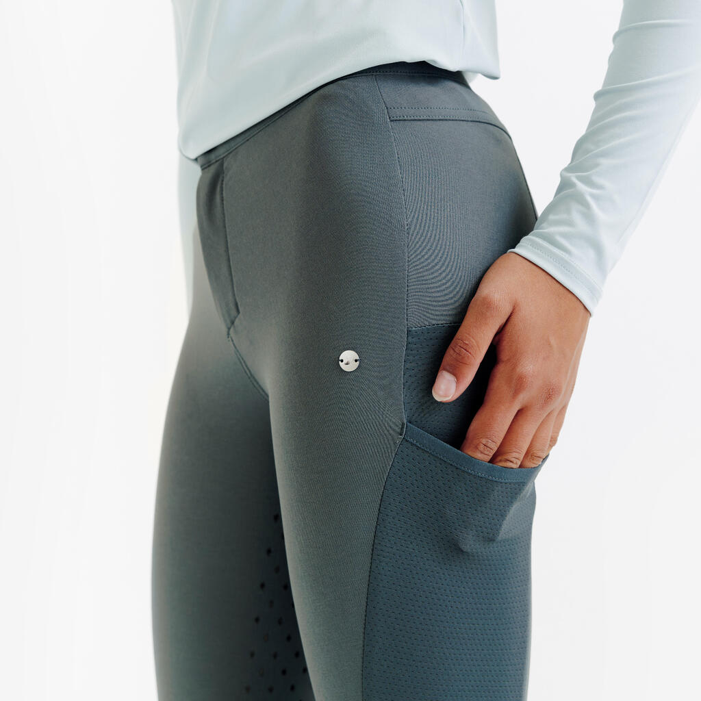 Lahek in zračen material je odličen za poletje. Zračni predeli odvajajo znoj. Površina z dobrim oprijemom jahalcem zagotavlja stabilnost v sedlu.