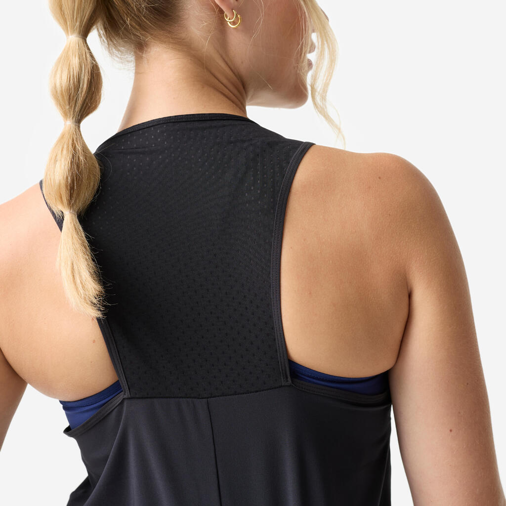 Ta majica brez rokavov je zasnovana tako, da omogoča odlično zračnost.Na zadnji strani je velika mrežasta površina, ki spodbuja kroženje zraka in pospešuje odvajanje toplote med intenzivnimi treningi.Ultra lahka tkanina se zelo hitro suši, tako da ostanete suhi tudi, ko se najbolj potite. Ta kombinacija mrežice in tehnične tkanine ustreza potrebam kardio in HIIT vadbe.