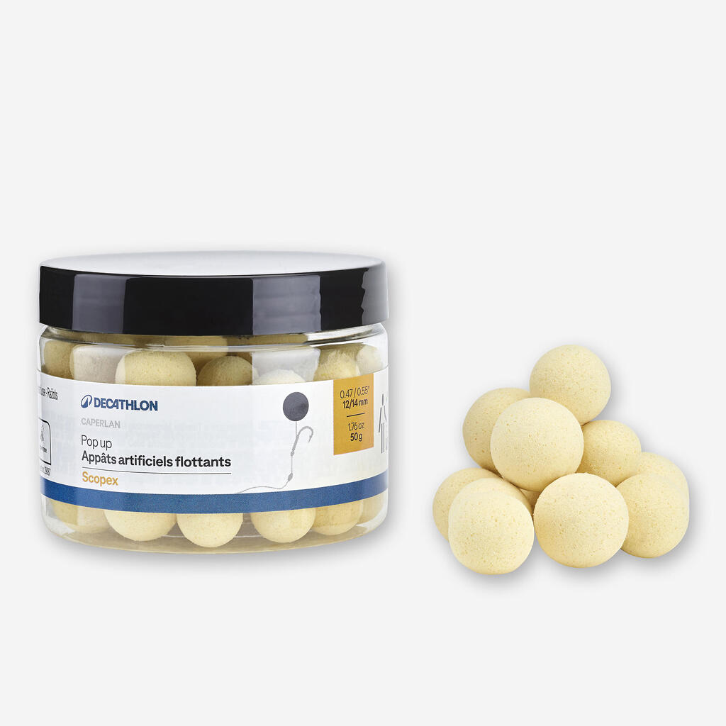 Boilij Pop-up združuje dolgotrajno plovnost z intenzivnim okusom jagoda banana, konoplja z tigrastimi oreščki, Spicy Tuna, Scopex ali veliki rak.Idealni za naveze snežaka, ki privabijo krape.