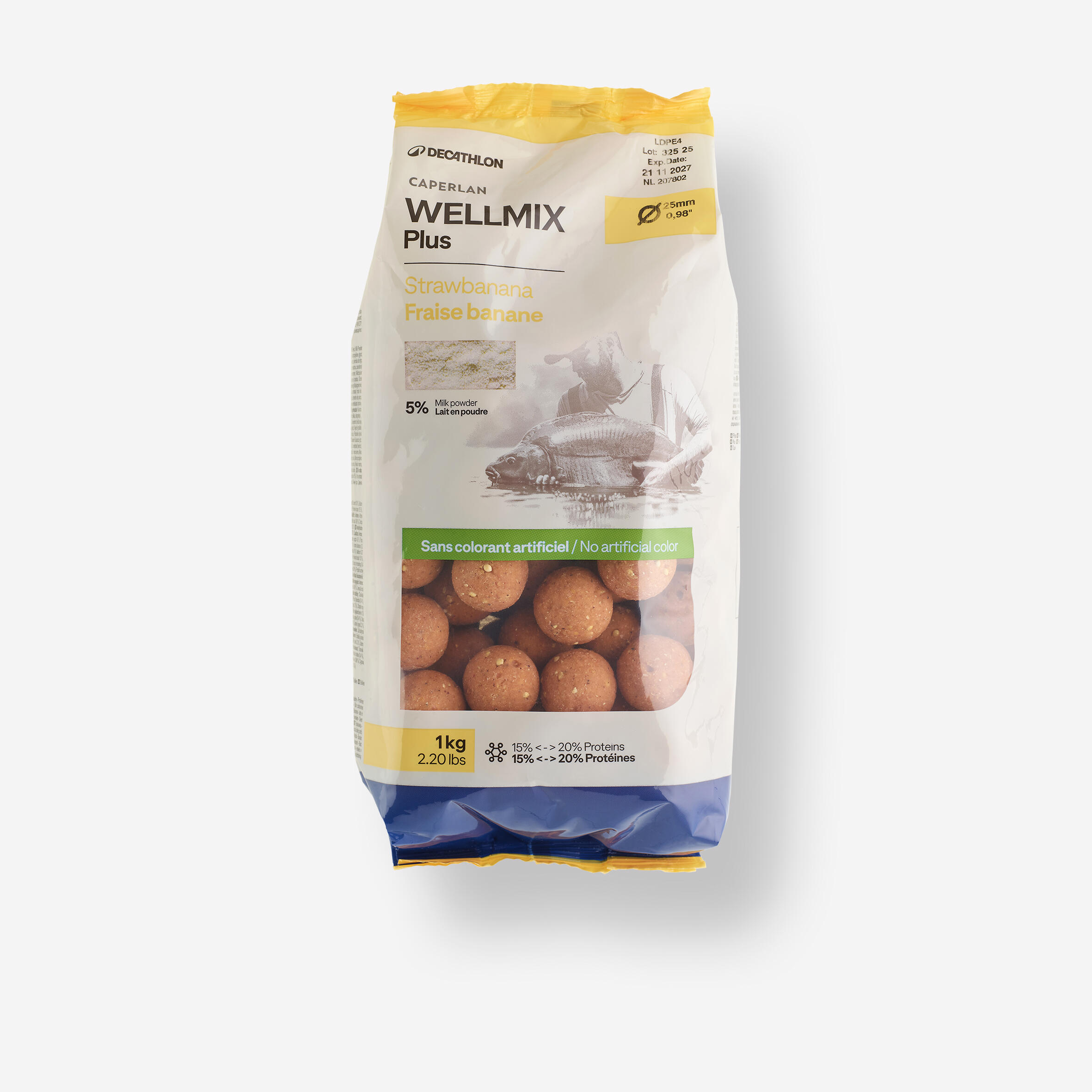 Bogata z beljakovinami, 25 mm Wellmix Plus počasi sprošča svoje okuse Strawbanana, Hempseed Tiger, Spicy Tuna, Scopex ali Monster Crab, da pritegne krape med dolgimi seansami. 1 kg zavoj.