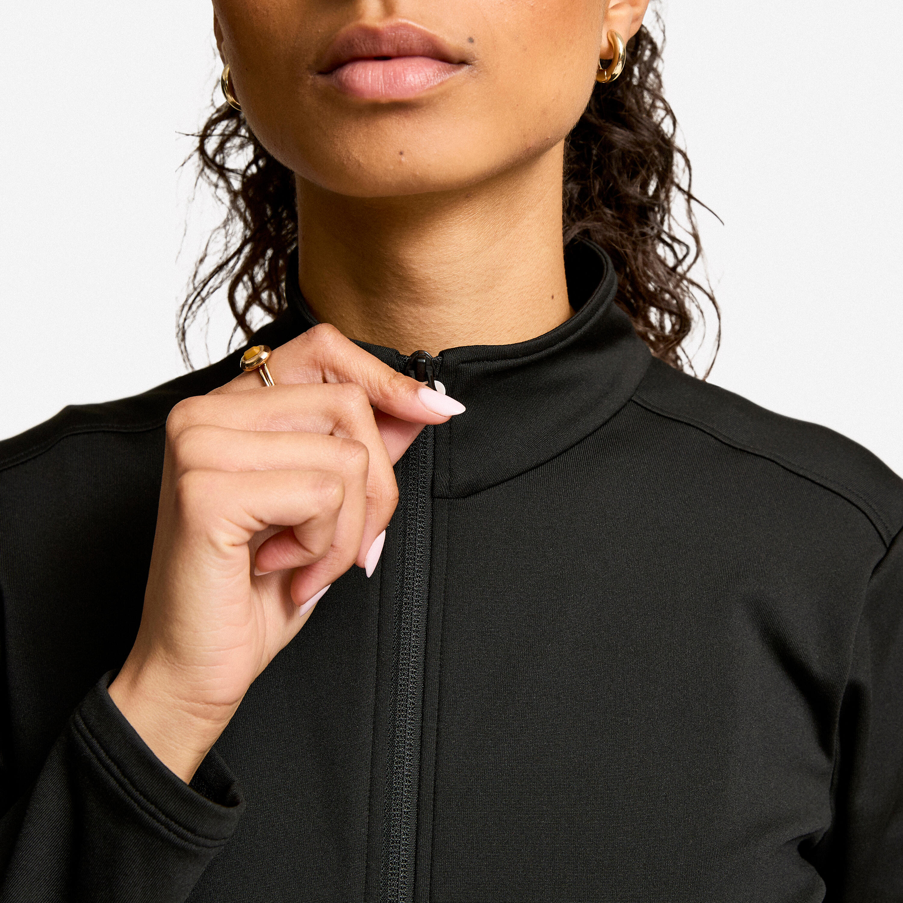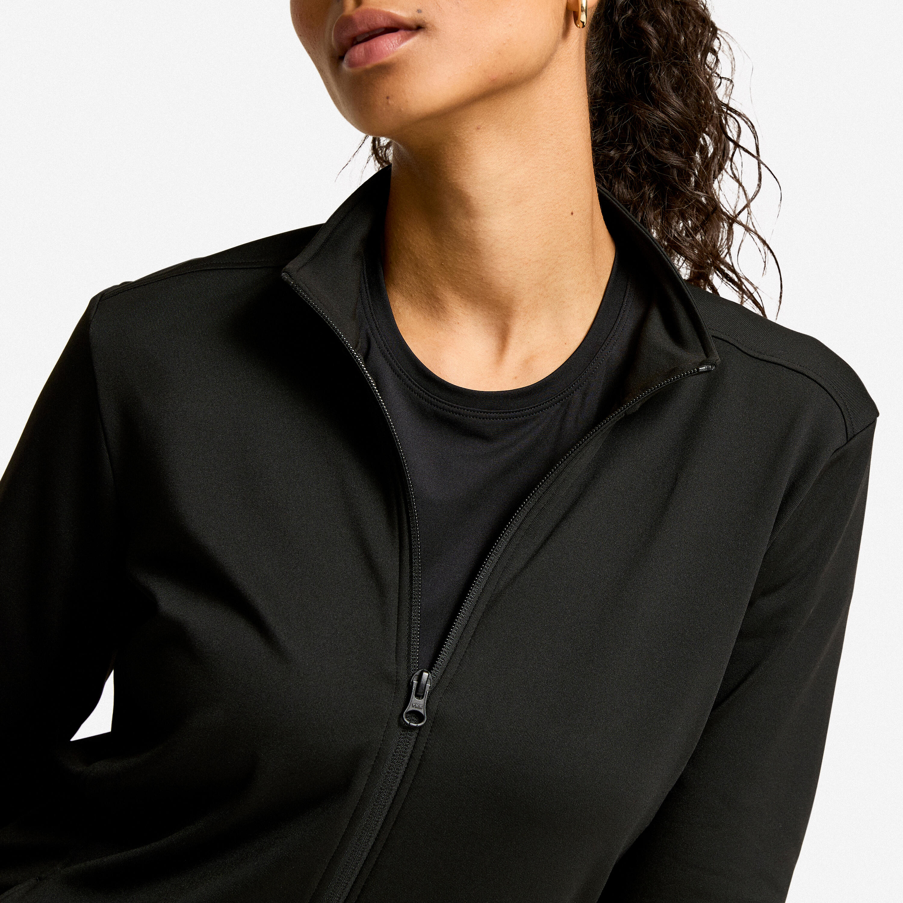 Tkanina je zračna: Omogoča kroženje zraka med kožo in jakno. To prezračevanje odvaja vlago tudi, če jakno pustite oblečeno v prvih nekaj minutah ogrevanja. Ti dve lastnosti skupaj ohranjata udobno raven toplote, tudi če se rahlo potite, s čimer se izognete občutku pregrevanja, ki ga lahko ustvarijo nekatere preveč izolirane jakne.