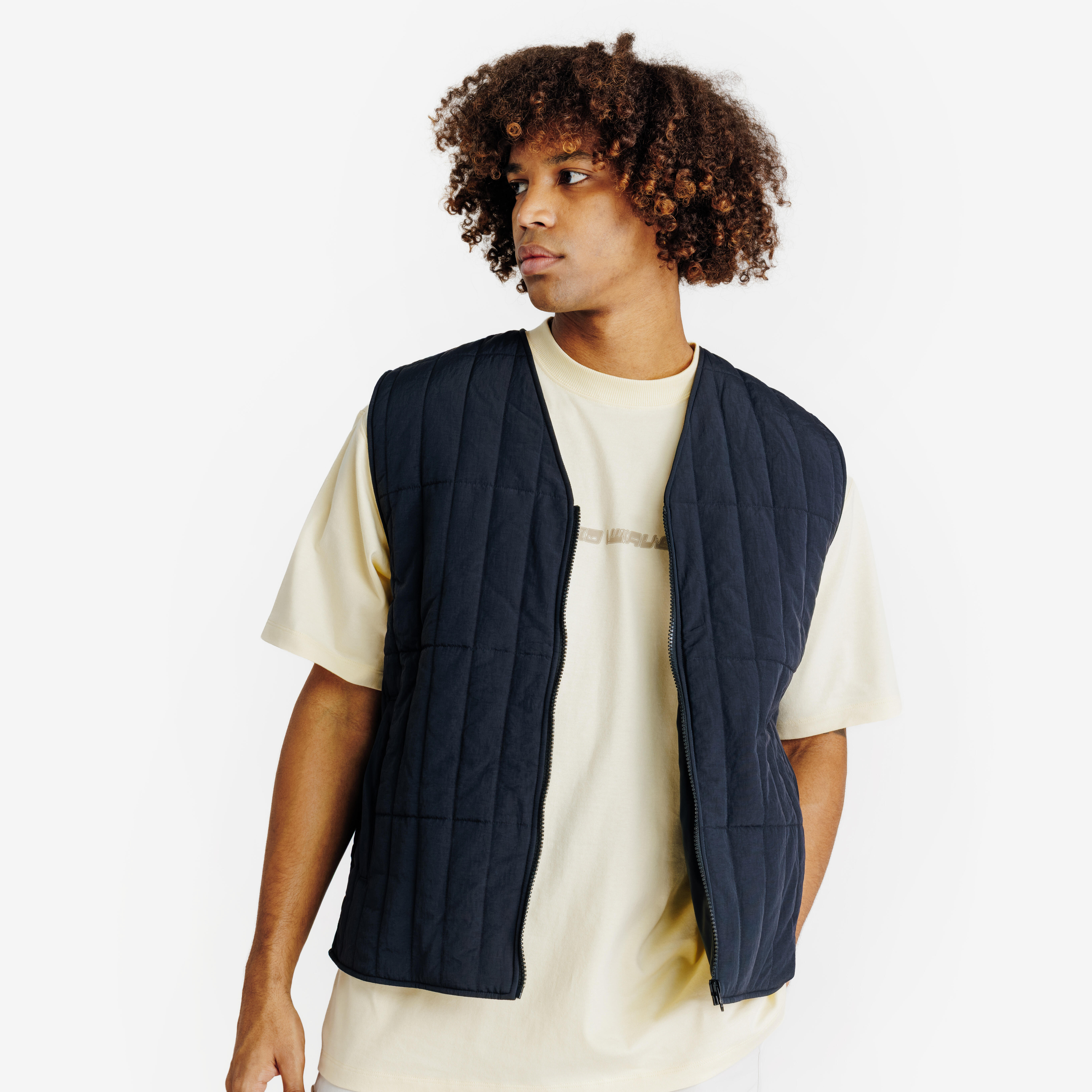 Ta prešita jakna brez rokavov z V-izrezom se enostavno kombinira in bo vašim oblačilom dodala stil za sproščen in brezčasen videz.