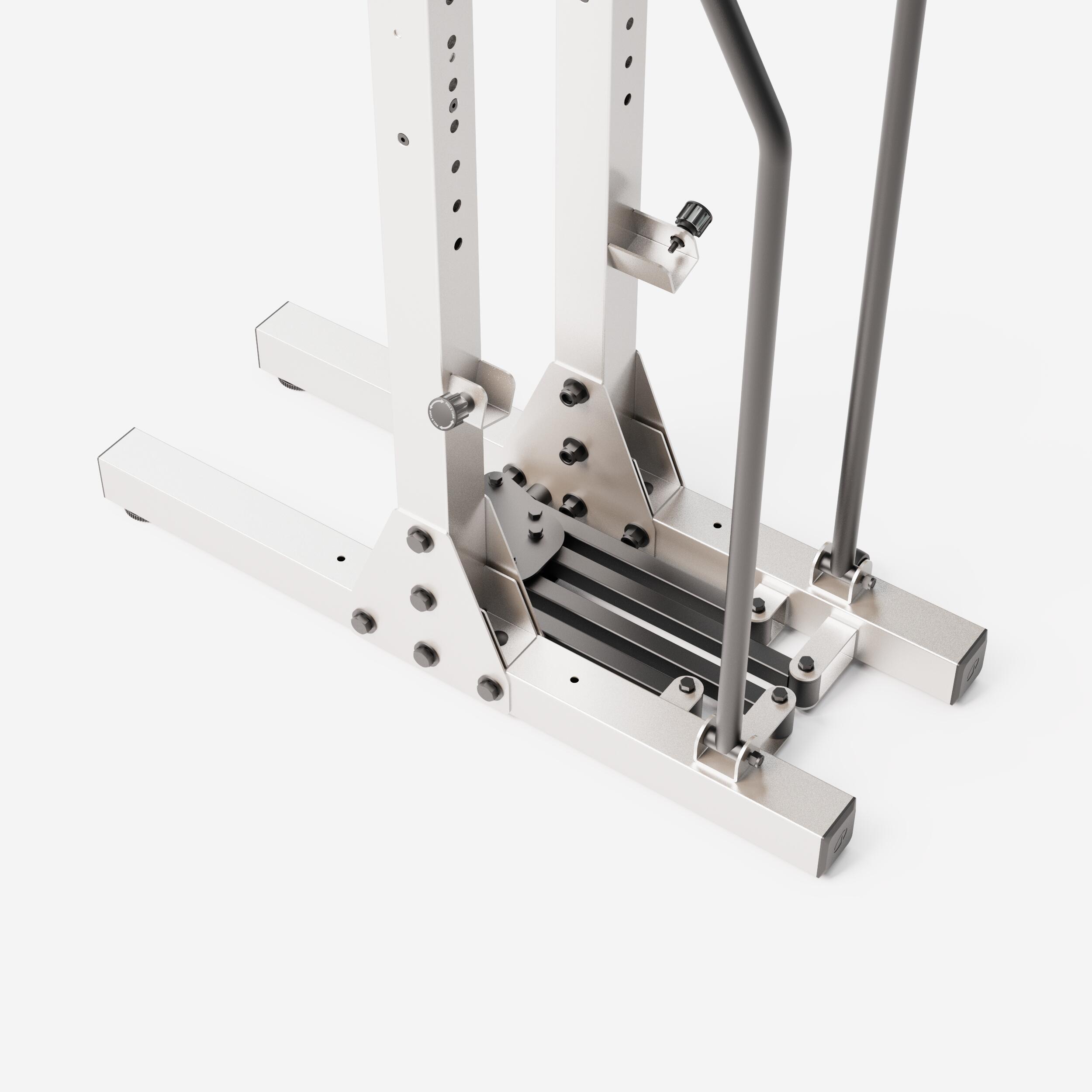 To stojalo ima ekskluziven patentiran sistem zlaganja, ki ga je Decathlon razvil skupaj s Sportsoulom. Zaradi te inovacije ga lahko zložite v manj kot 15 sekundah in tako takoj sprostite celotno platformo. Idealno za skupne prostore, kjer vsaka dejavnost potrebuje svoj prostor. Enostavno premikanje in povezovanje s profesionalno klopjo z enim klikom za ustvarjanje popolne postaje.Pridobite si fleksibilnost pri organizaciji psrotora in maksimalni izrabi vsakega kvadratnega metra.