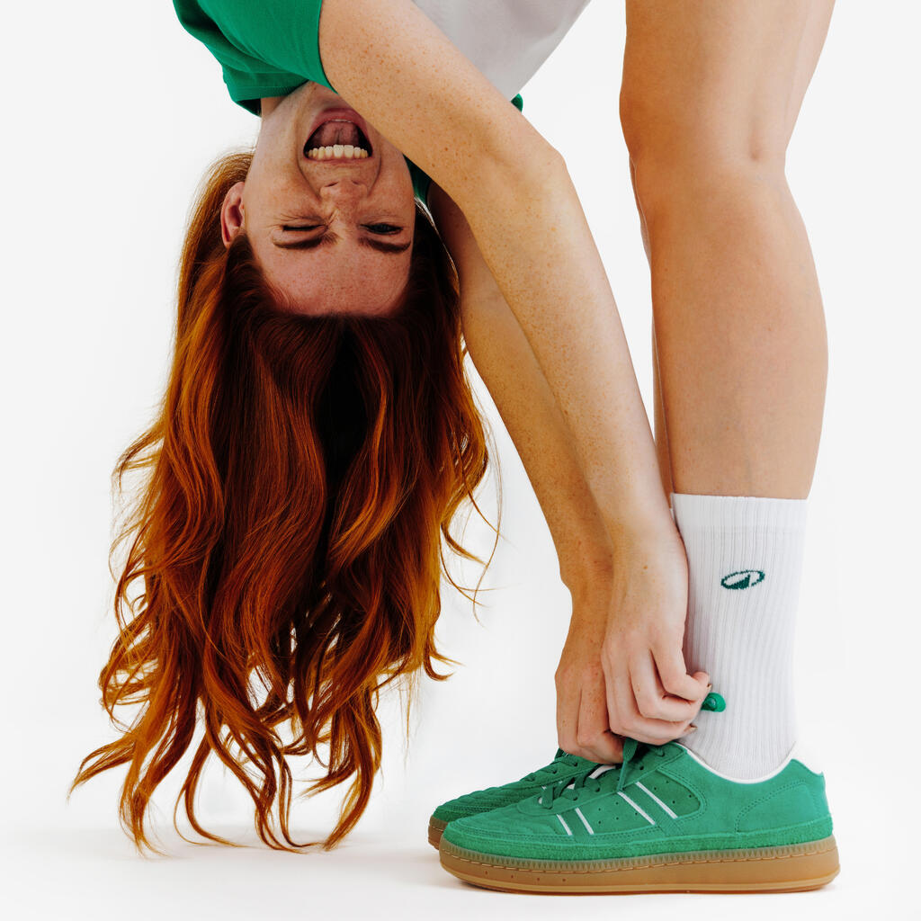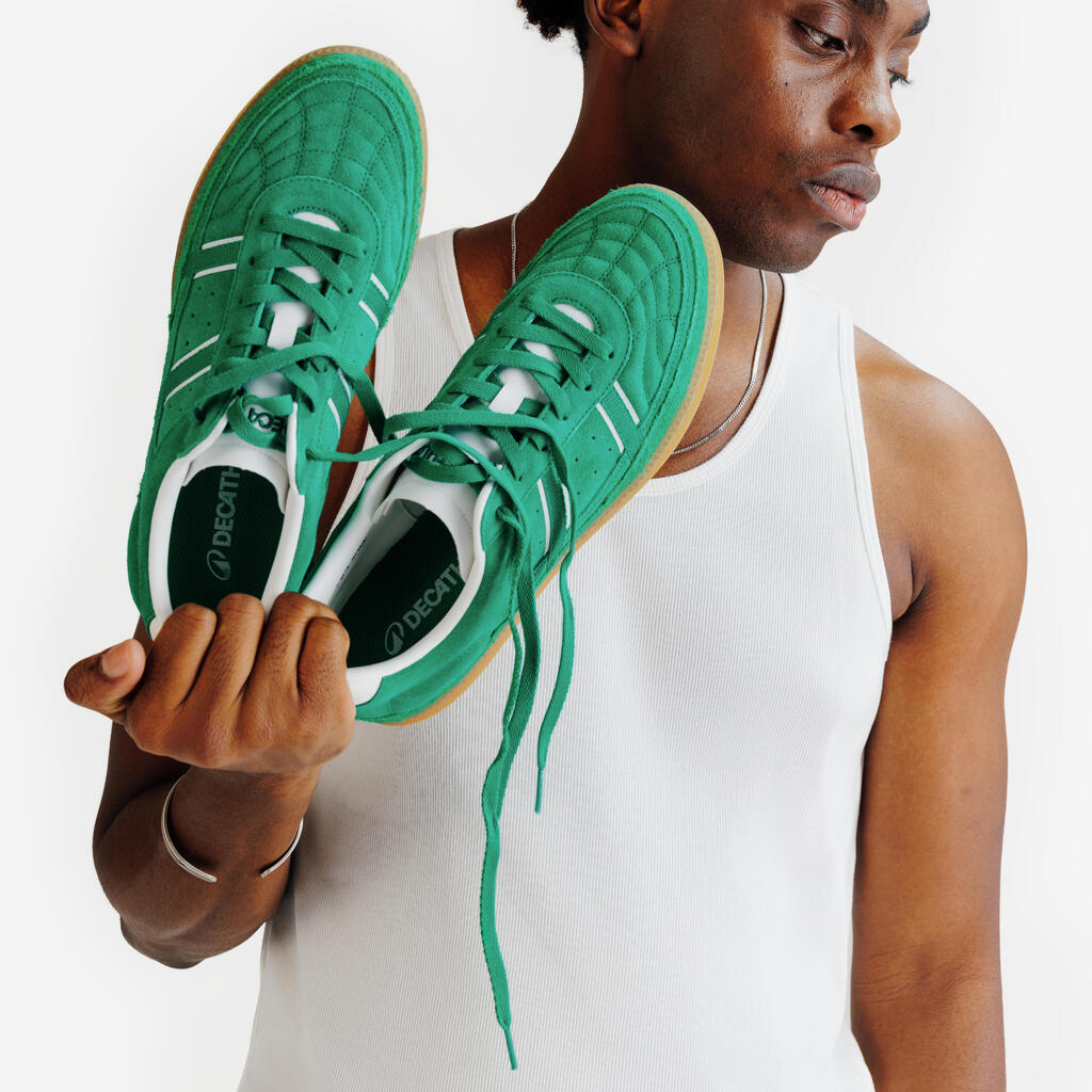 Navdihnjen z dvema športoma – dvoranskim nogometom in tenisom – ima copat Player 80 retro terasni stil. Usnjeni zgornji del in gumijast podplat za udobje in vzdržljivost.