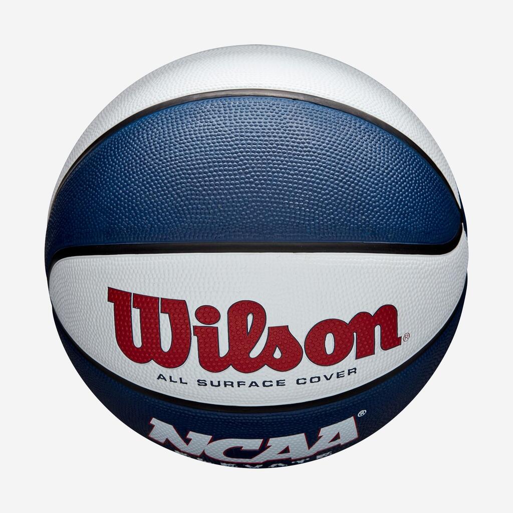 Košarkarska žoga v barvah NCAA, v velikosti 7. Primerna je za odrasle in otroke - za igro na vseh vrstah površin (notranje in zunanje).