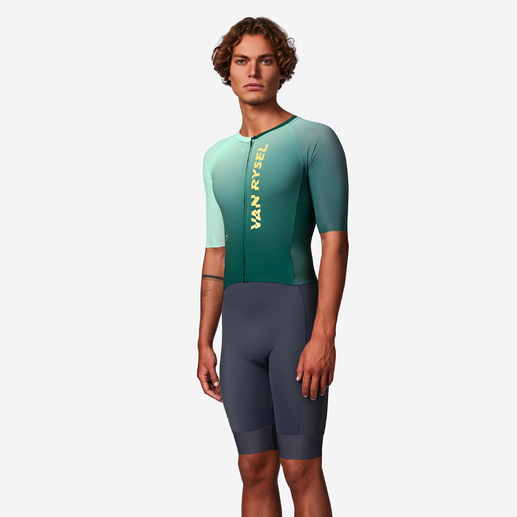 Triatlonska obleka je narejena iz lahkega materiala, ki omogoča izjemno hitro sušenje med prehodom iz plavanja na kolesarjenje, tako da ne boste mokri na kolesu. Da, prek triatlonske obleke lahko oblečete tudi neoprensko obleko, da prihranite čas pri prehodu!