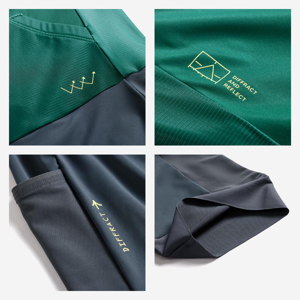 Zadrga v polni dolžini se odpre kot telovnik in omogoča zračenje med tekmo. Poleg tega bistveno olajša postanke na stranišču!