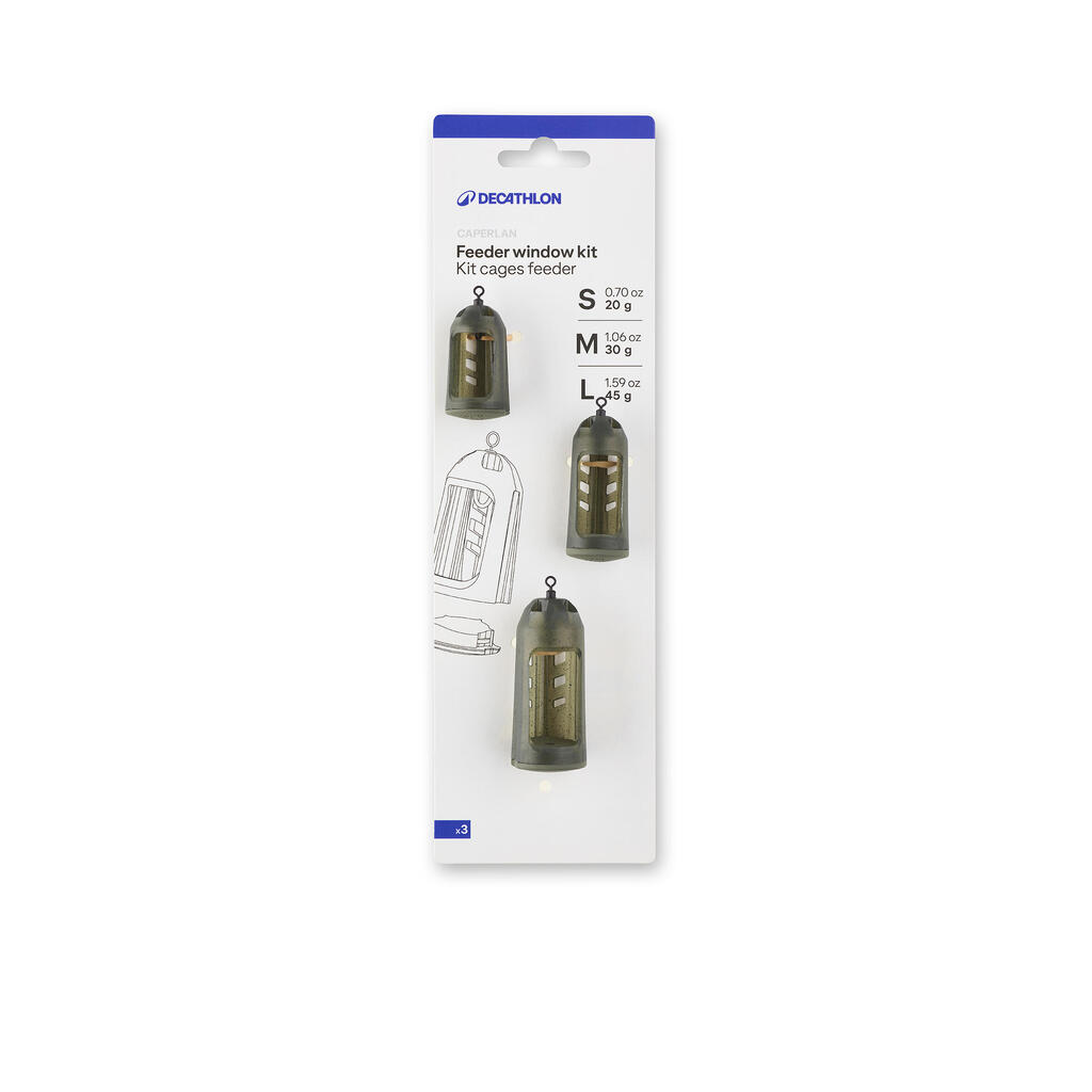 Ta komplet vključuje 3 kletkaste krmilnice različnih velikosti. Njihova poenostavljena struktura je zasnovana za dolge in natančne mete, zlasti zahvaljujoč njihovi obteženi podlagi.