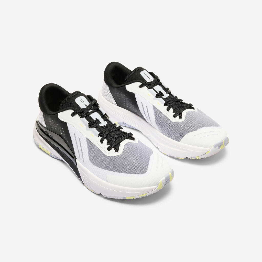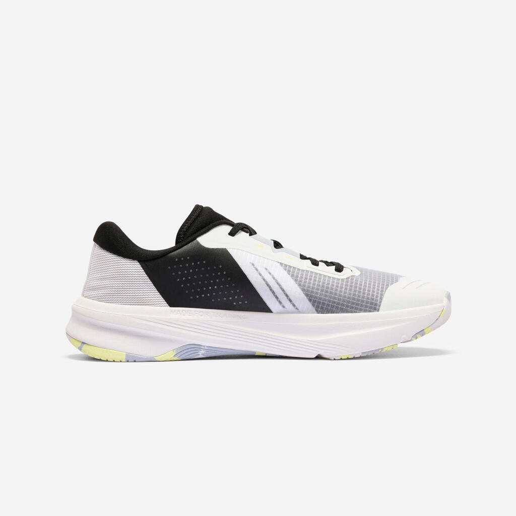 Edinstvena zasnova podplata zagotavlja stabilno osnovo za vaše vaje za moč, hkrati pa vključuje absorpcijski sistem za vaše eksplozivne gibe. Njegova struktura se takoj prilagodi intenzivnosti vaše vadbe:stabilno pod obremenitvijo pri vadbi z utežmi, dinamično v kardio fazi. Od izpadnih korakov do burpeejev, od stabilnosti pri počepih do odzivnosti pri skokih, vaša zmogljivost ostaja konstantna.
