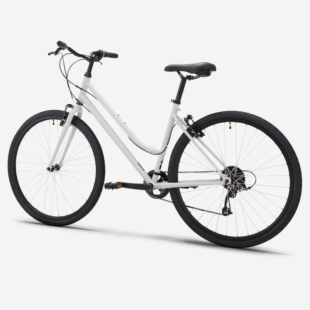 Sedež ERGOFIT TREKKING 500 omogoča vožnjo v položaju, ki je bolj primeren za hibridno kolo, s hrbtom pod kotom 60°. Velikost objemke: 32 mm.