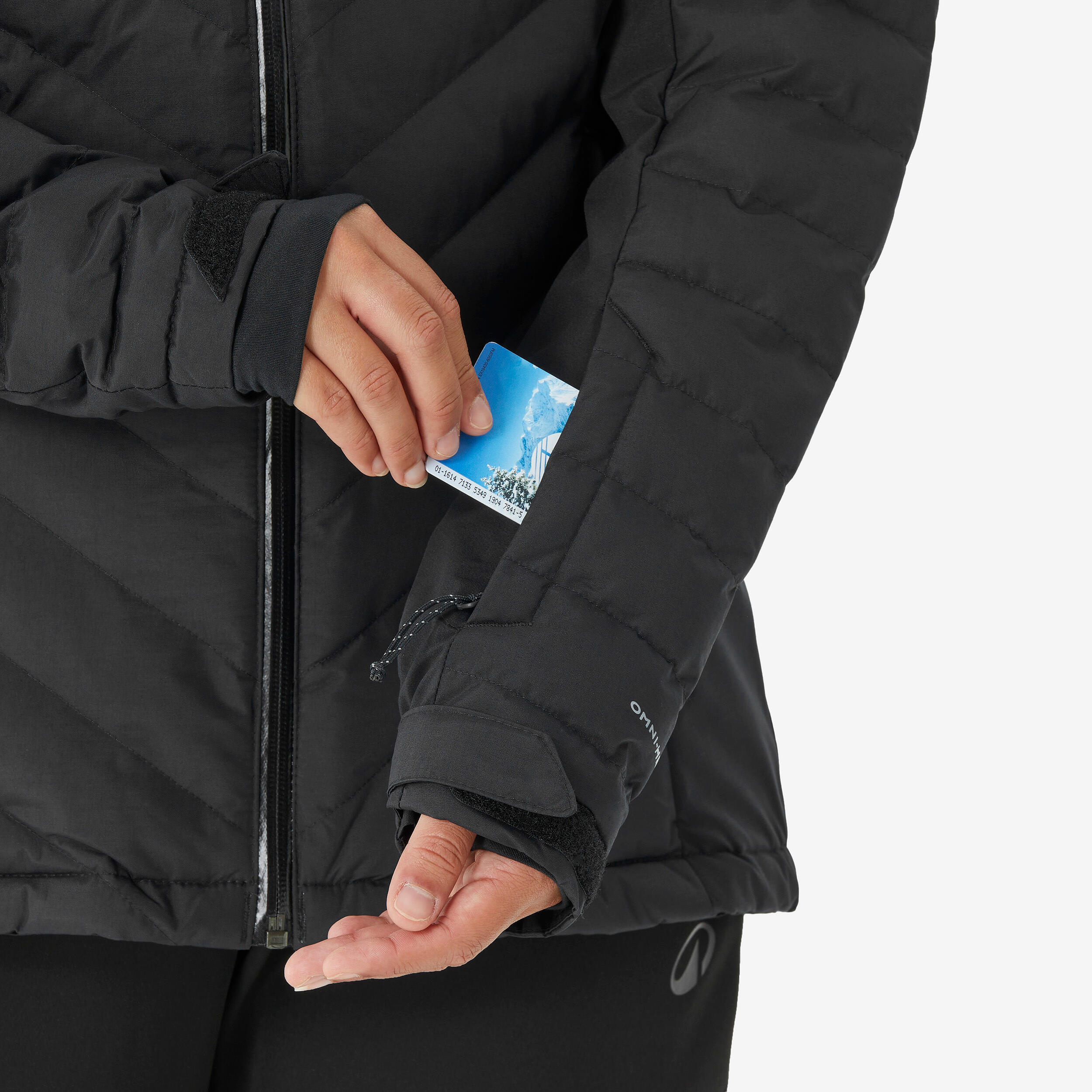 Žep za smučarsko vozovnico, žep za očala in žepa za roke z zadrgo.