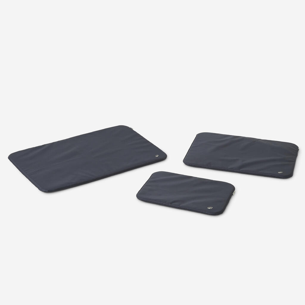 Podloga za psa je na voljo v velikostih S, M in L, zato se odlično prilega transporterjem in kletkam. Pena, sestavljena iz 50 % poliestra in 50 % poliuretana, je debela 2 cm. Podloga je izdelana iz 100 % poliestra, ki je odporen na trganje in odrgnine. Vaš štirinožni prijatelj bo s pomočjo te podloge lahko udobno počival tudi drugje, kot na kavču ali postelji.