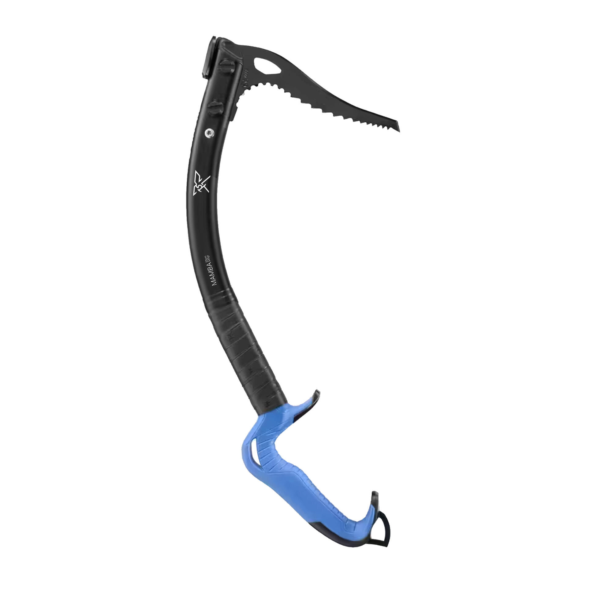 - Jekleno rezilo v obliki banane, posebej zasnovano za uporabo na ledu, a učinkovito tudi na skalah.