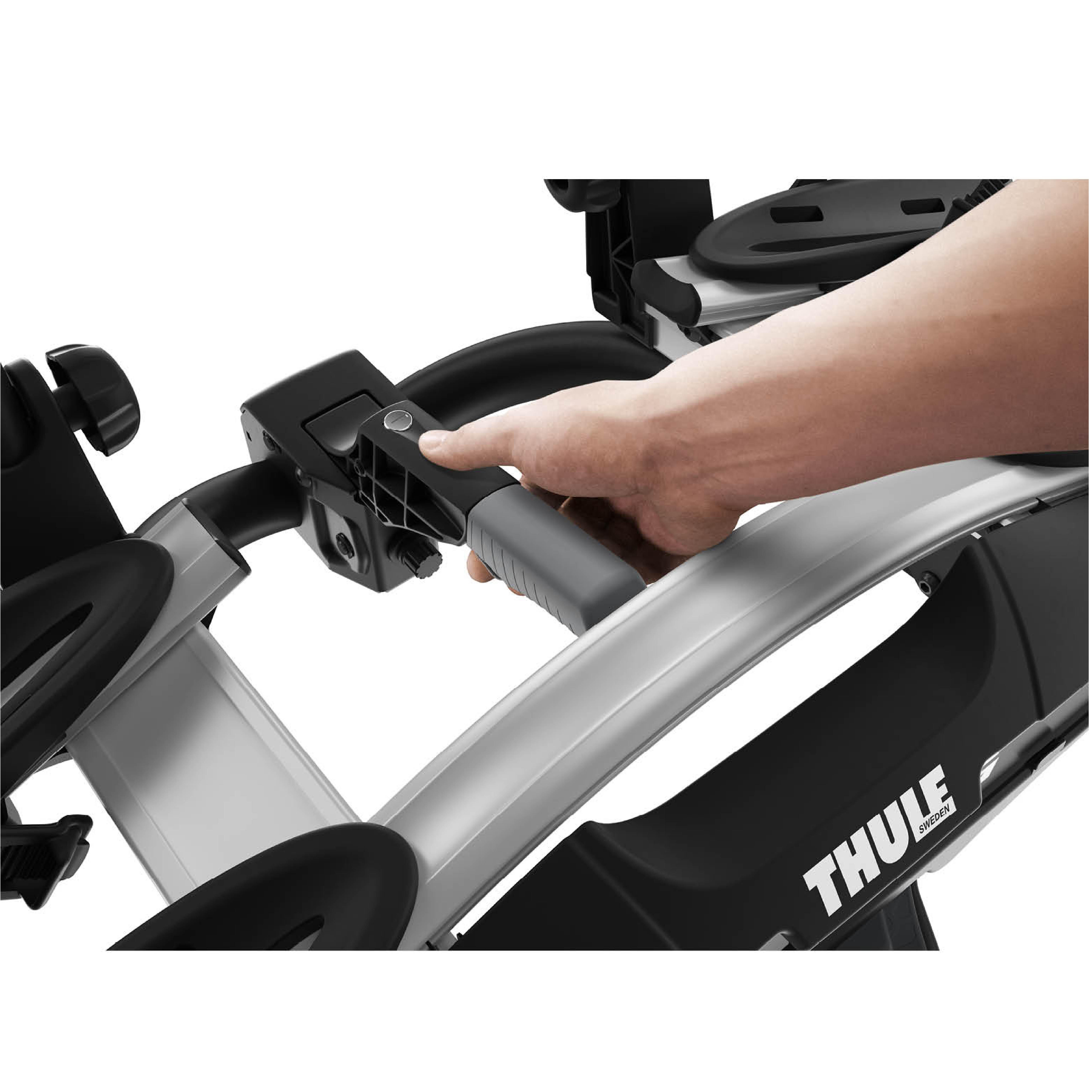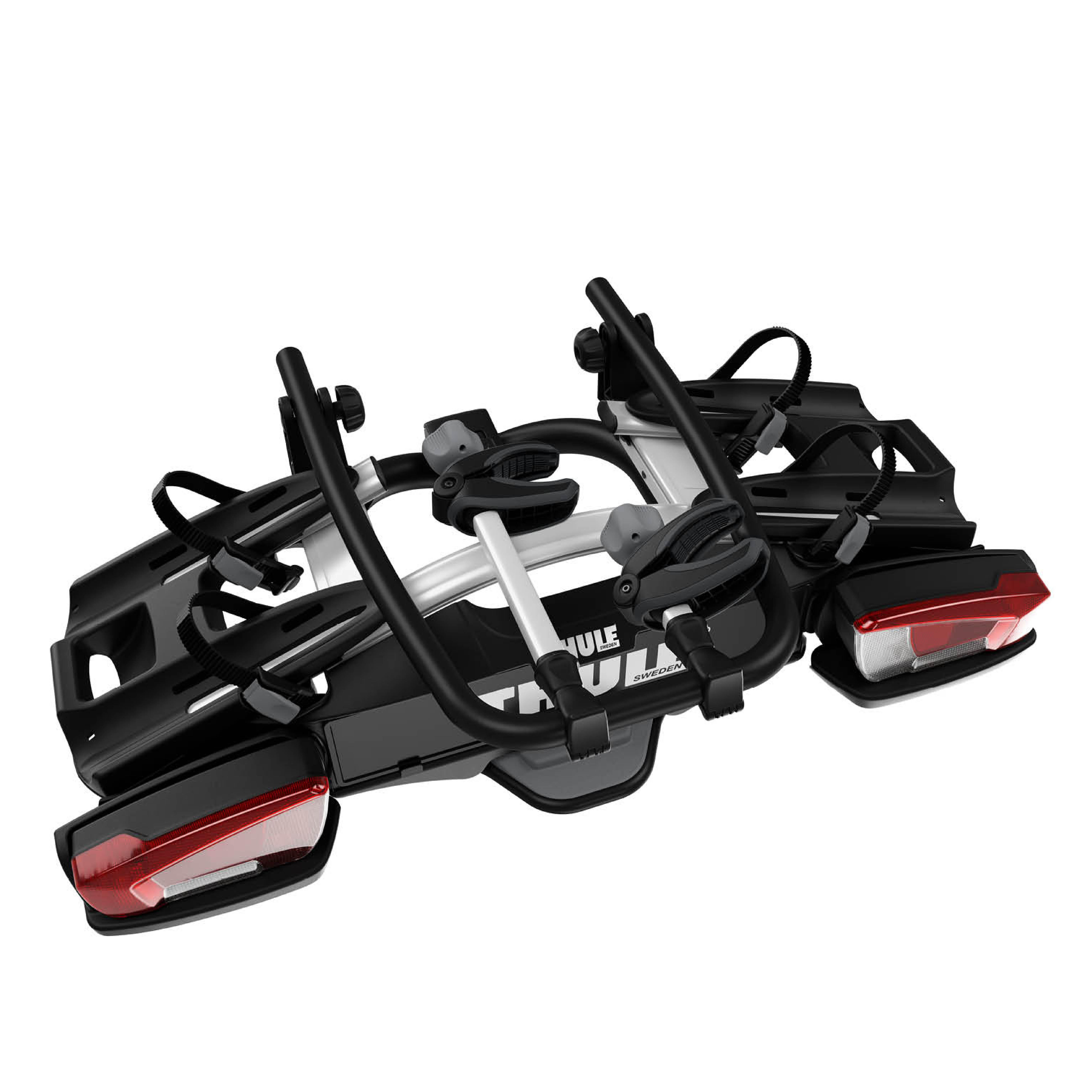 Nosilec za kolesa Thule VeloCompact 924 z vlečno kroglo omogoča varen prevoz dveh koles, saj je na nosilcu nameščen sistem dvojnega zaklepanja koles.