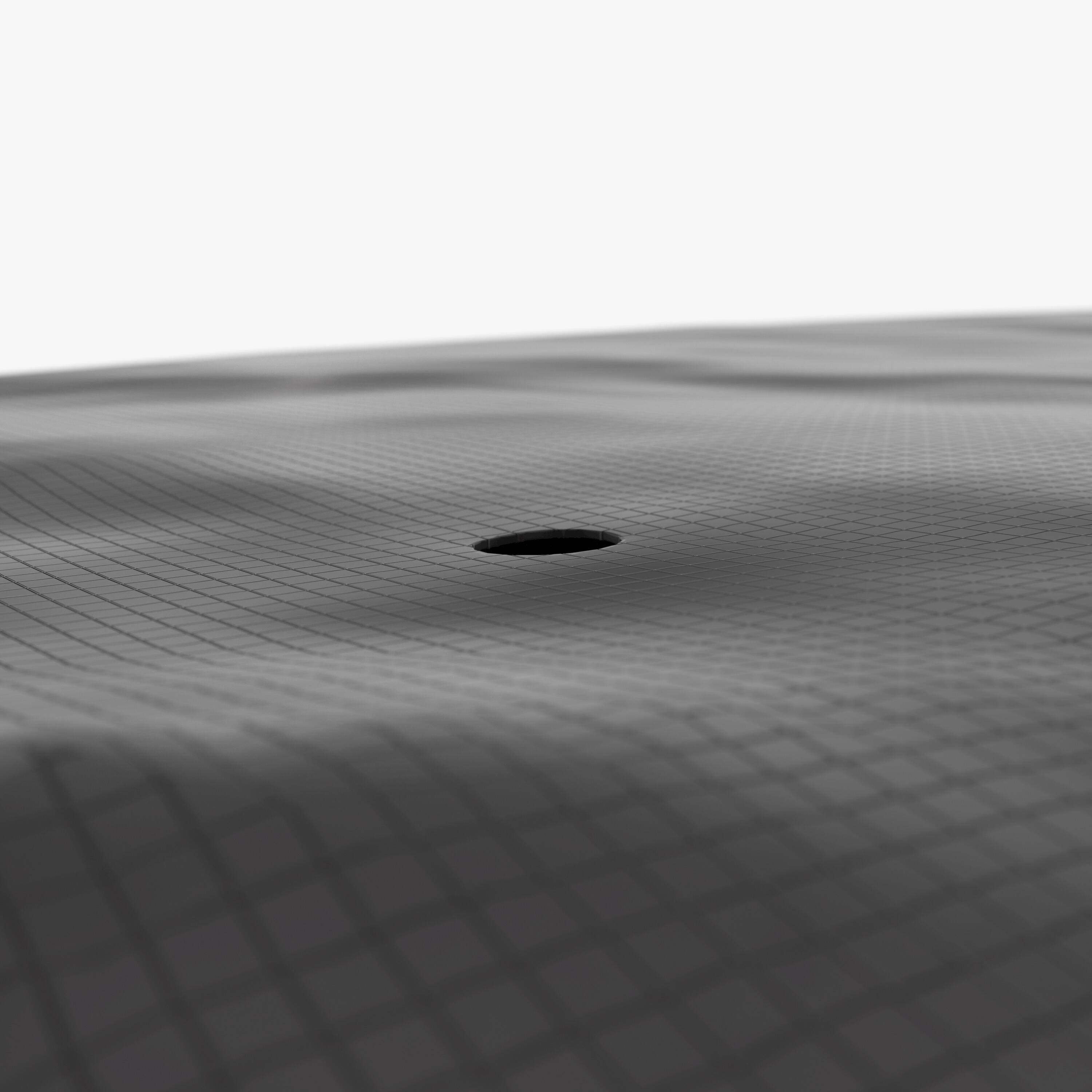 Deževnica steče s pokrivala skozi 7 lukenj, razpršenih po celotnem pokrivalu. Ena je na sredini pokrivala, drugih šest pa je enakomerno razporejenih.Ko voda odteče, gre skozi perforirano skakalno podlogo. Pokrivalo je izdelano iz polipropilena, ki je vodoodporen in se hitro posuši.