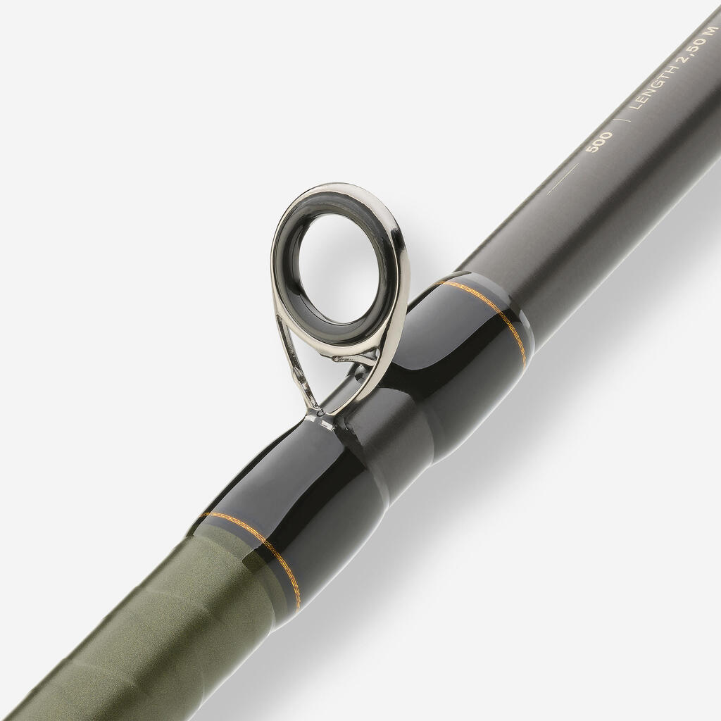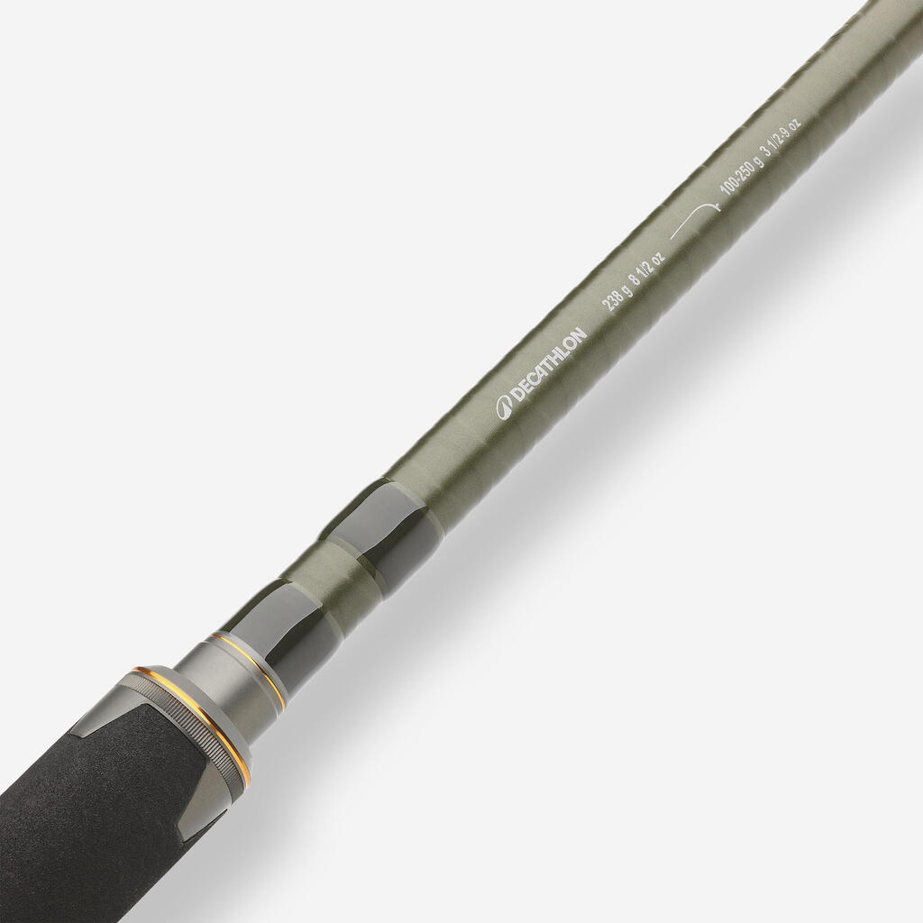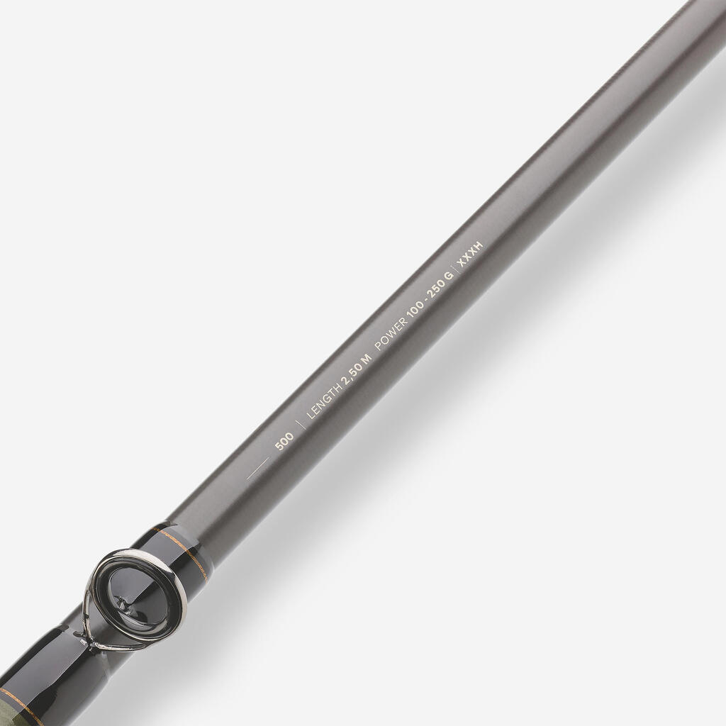 Z dolžino 2,50 m in težo metanja XXH (100/250 g) ponuja optimalno območje metanja, hkrati pa ohranja odlično udobje za močan ribolov skozi ves dan.