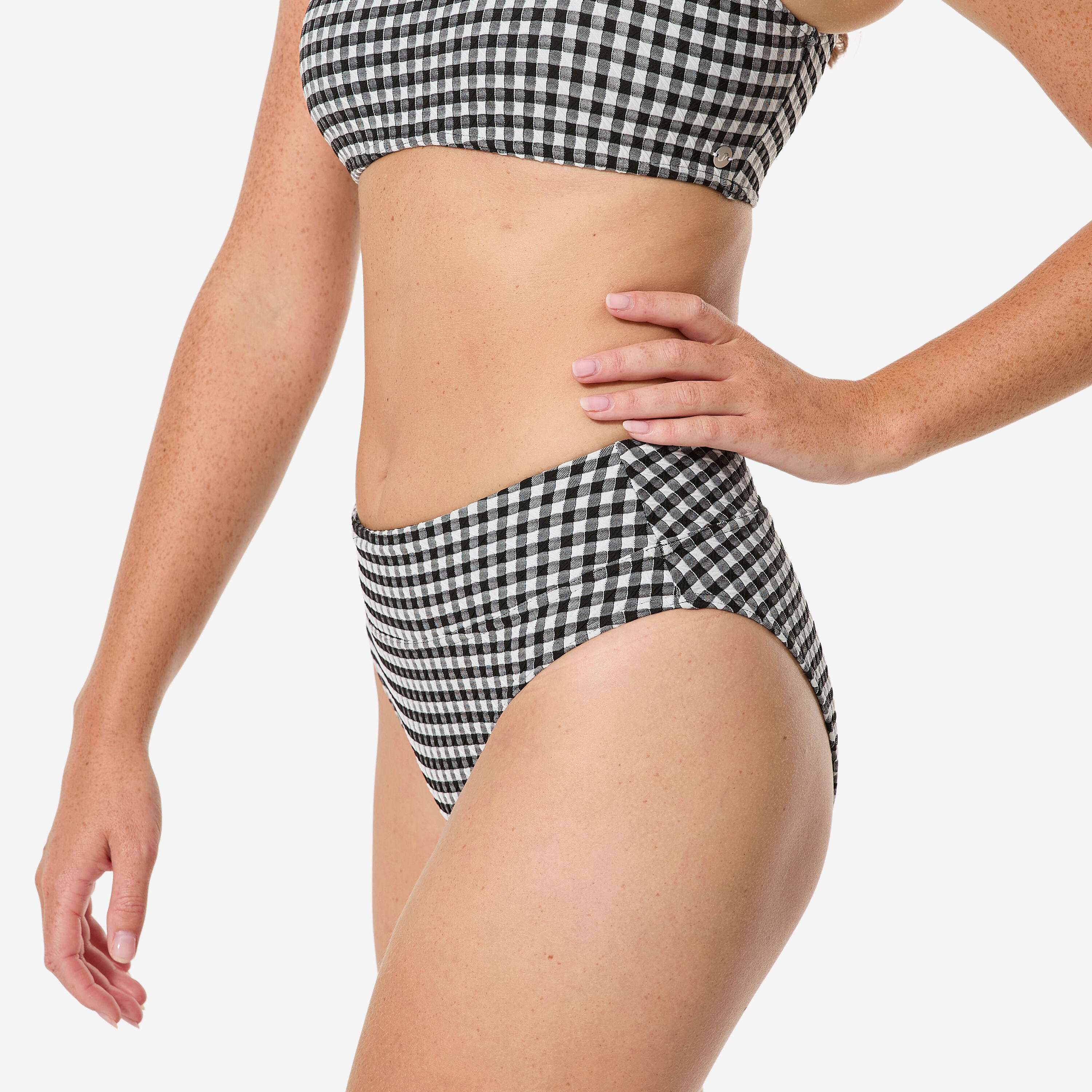 Deskarke nimajo časa za nameščanje spodnjega dela kopalk. Zaradi tega smo zasnovali kopalke z visokim pasom Nora. Širok pas z mrežastim materialom za oblikovanje postave skrbi za dober oprijem v valovih. Kopalke so preizkusile številne redne deskarke na valovih. Srednja višina in ženstvena zasnova.