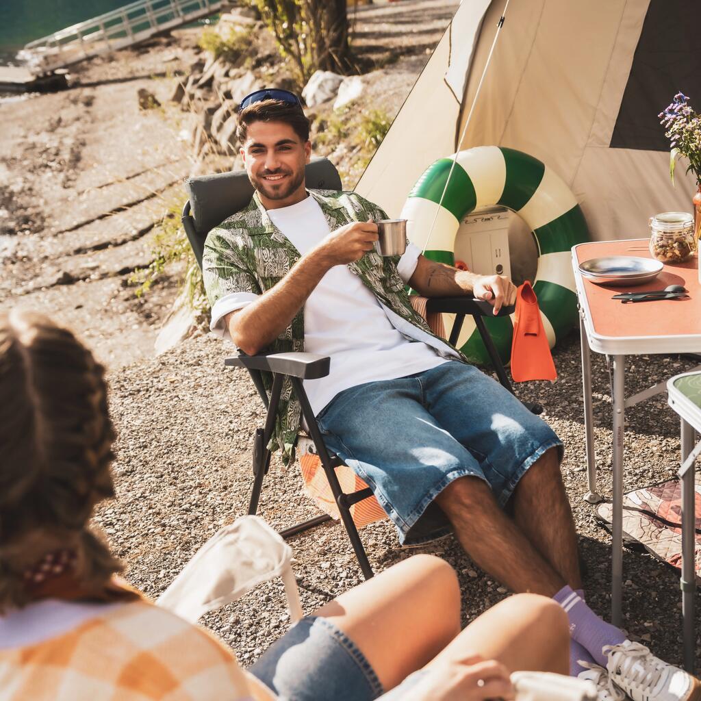 Jeklen okvir in tkanina preneseta obremenitev do 110 kg. Od kampiranja v gorah do plaže, povsod vam bo udobno.