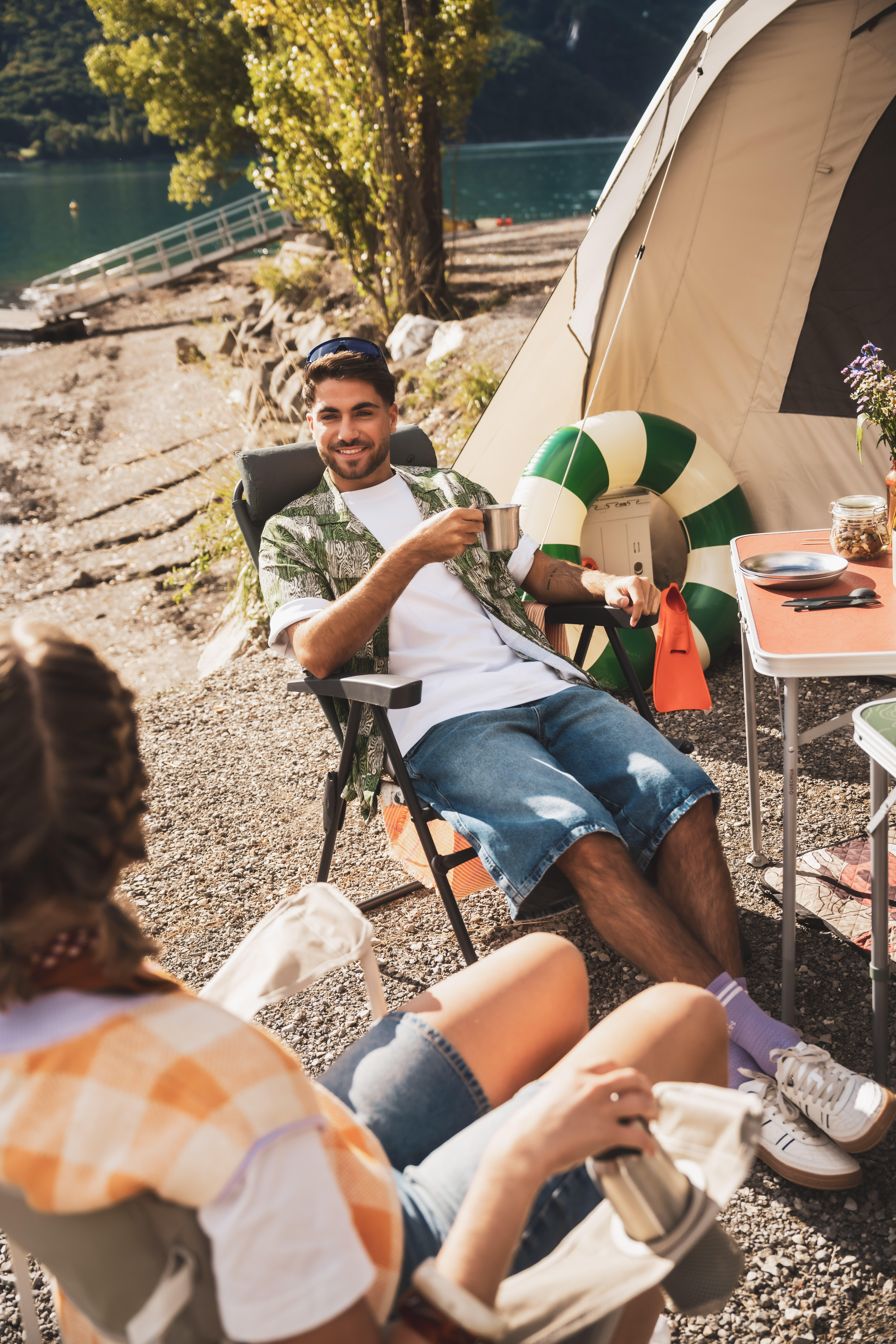 Stol lahko uporabljate na prostem med kampiranjem, na vrtu ali v naravi. Dolgotrajna izpostavljenost UV-žarkom in vlagi lahko poškoduje izdelek. Hranite na suhem mestu.